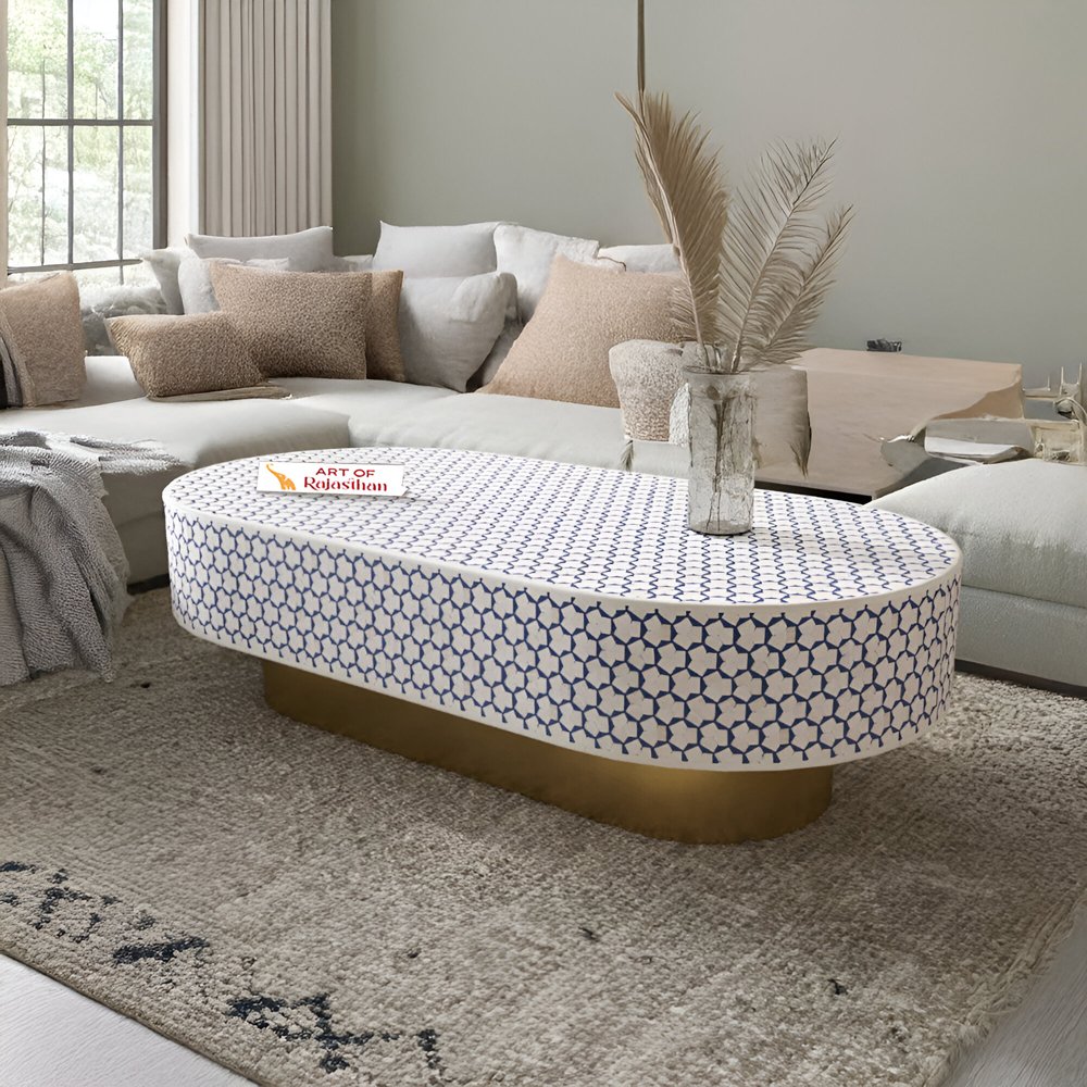 Targua Bone Inlay Oval Coffee Table – Art of Rajasthan