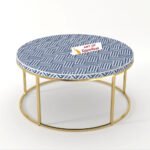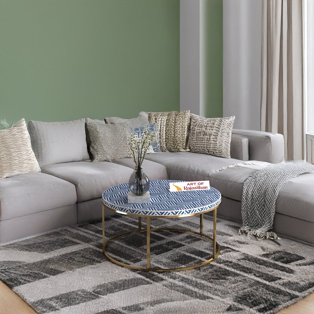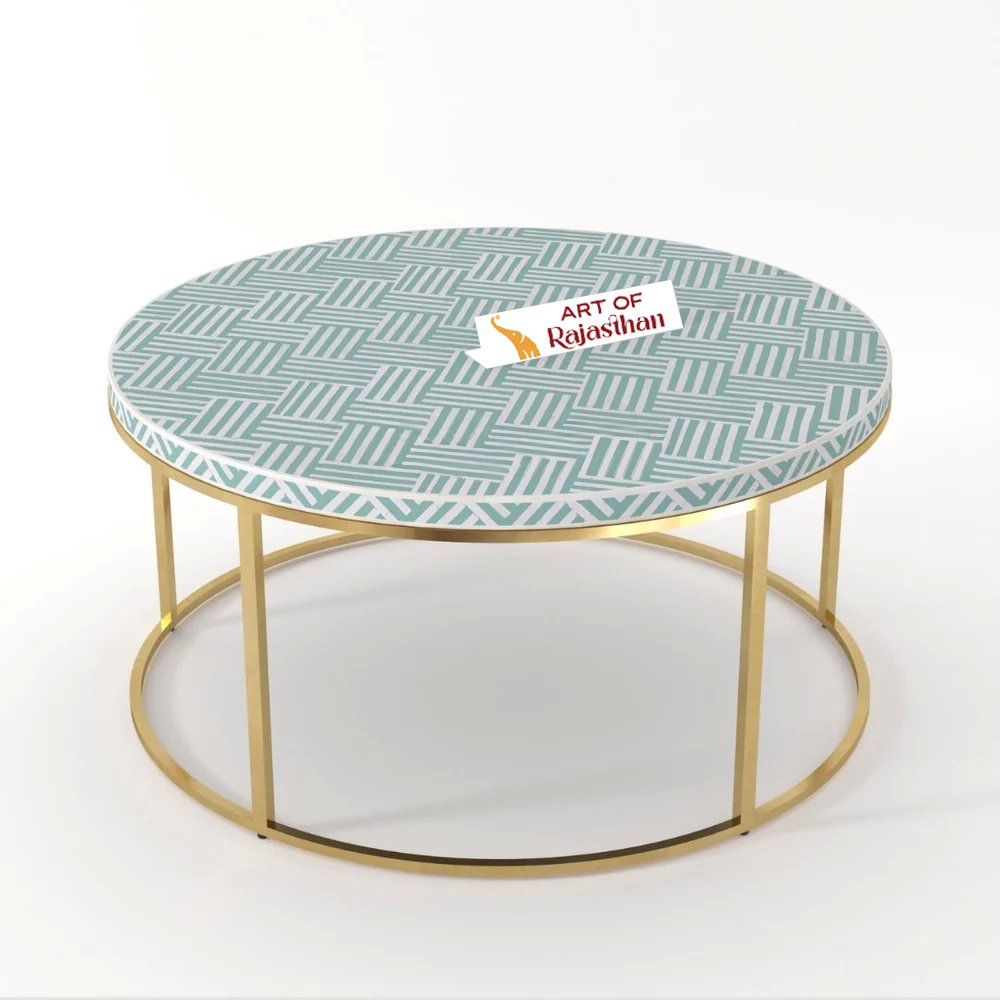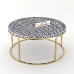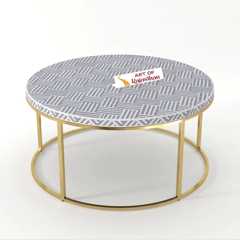 Chevron Bone Inlay Round Coffee Table with Metal Stand – Art of Rajasthan