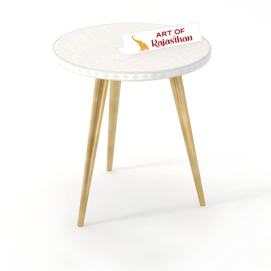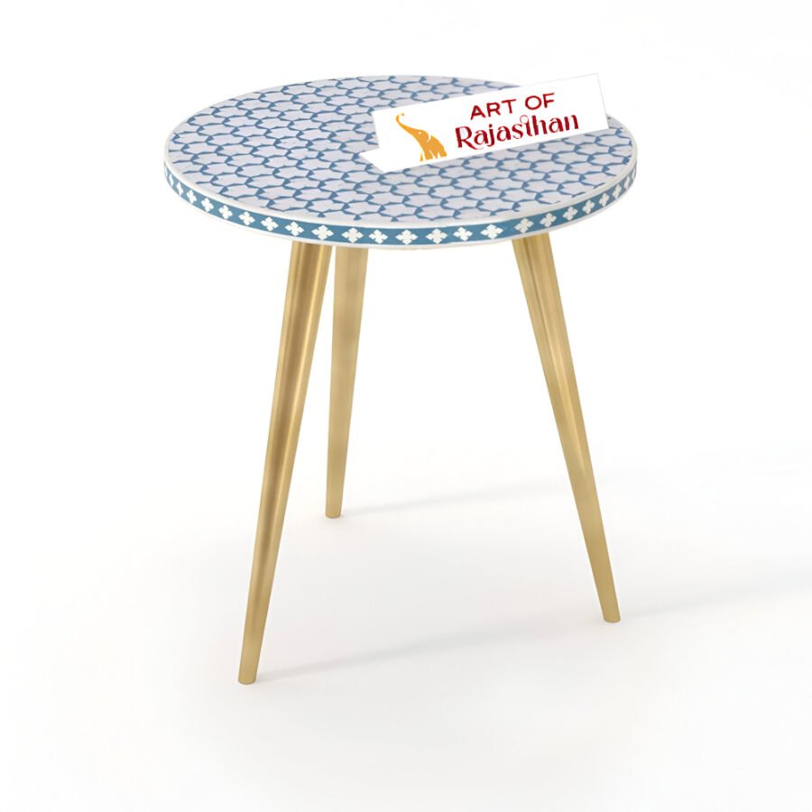 Bone Inlay Round Side Table with Three Metal Legs – Targua