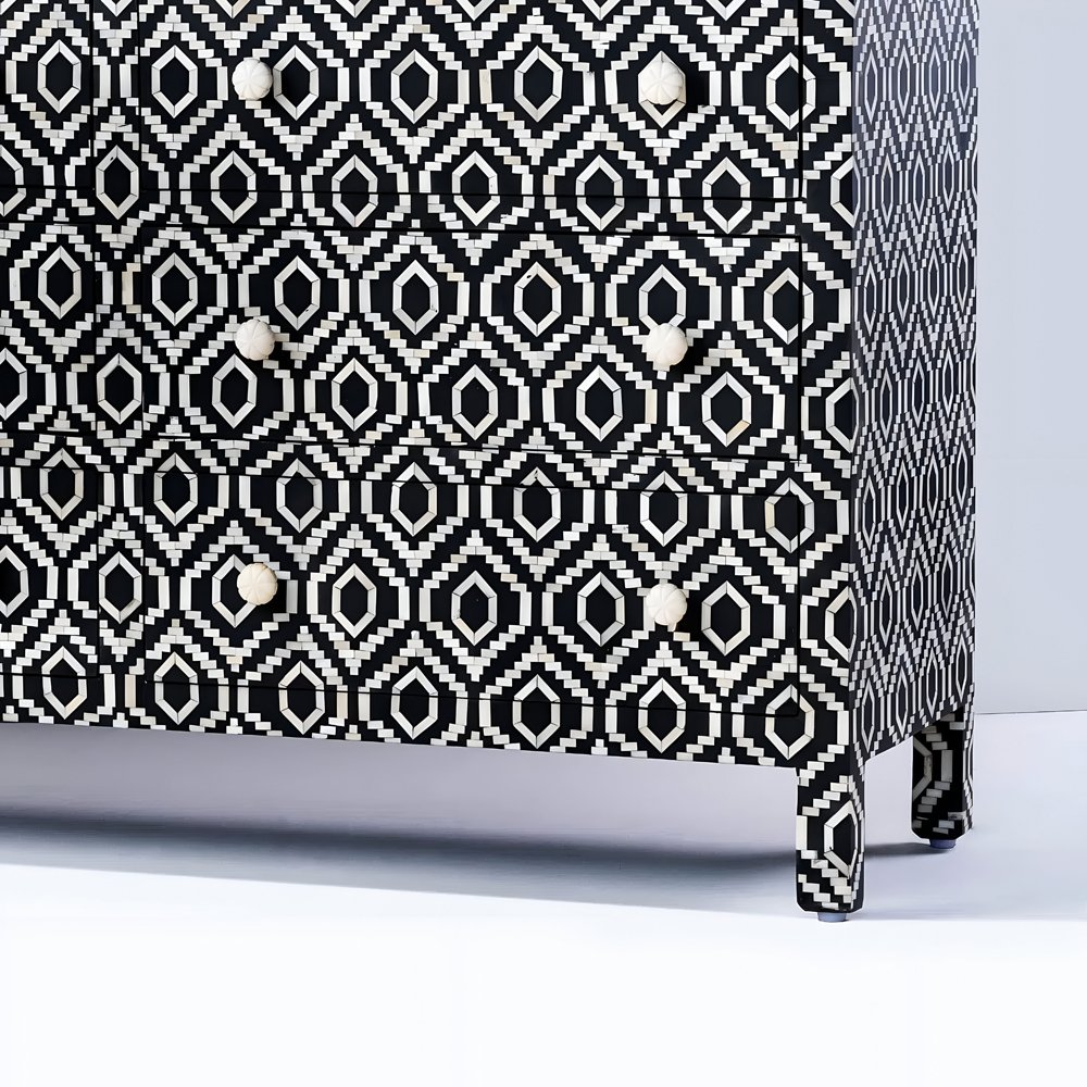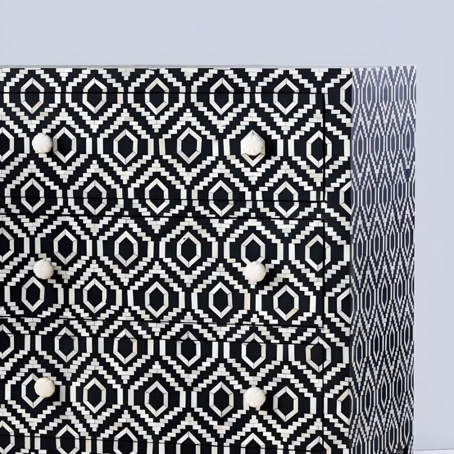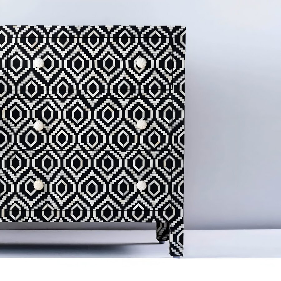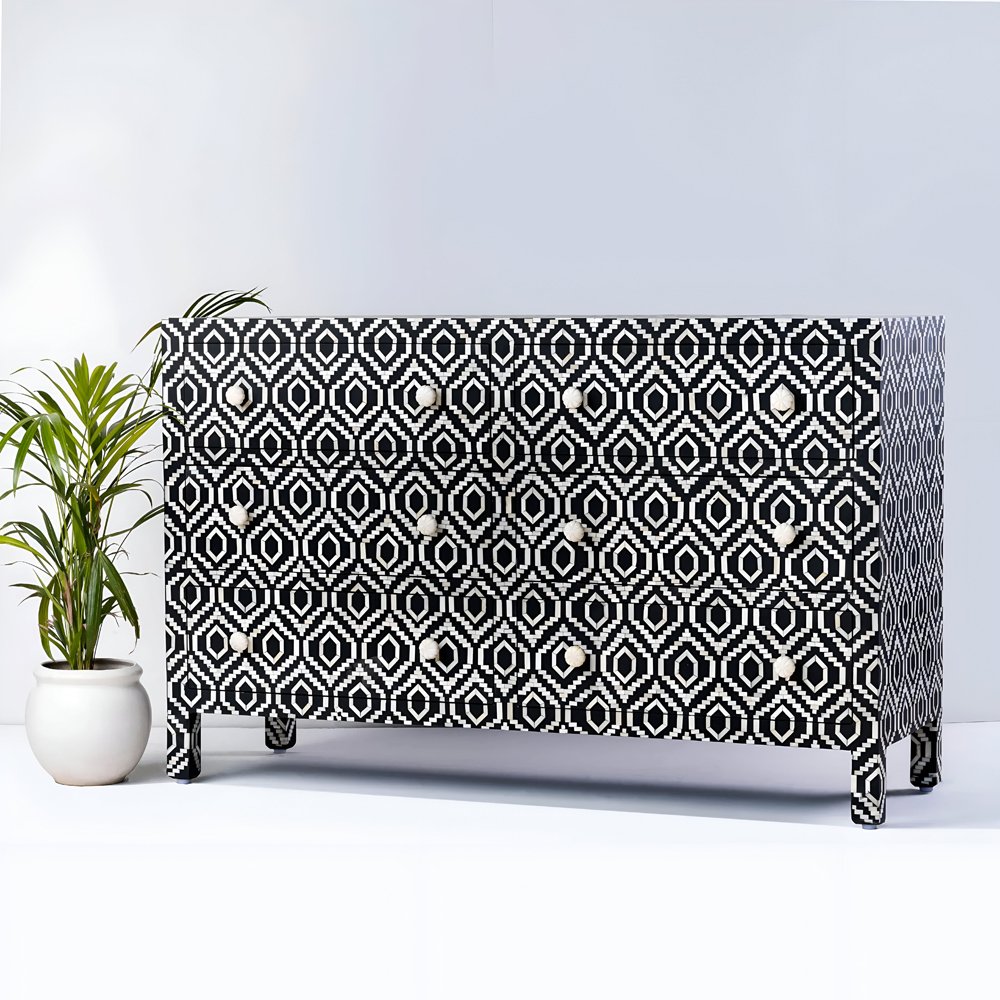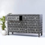 Bone Inlay Sideboard – Oval Diamond Black & White
