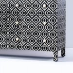 Classic charm meets bold design. The Bone Inlay Sideboard – Oval Diamond by Art of Rajasthan showcases a striking black and white geometric pattern, handcrafted with intricate bone inlay and mother of pearl. The elegant oval diamond motif adds visual depth, making it a showpiece in any refined interior. Built on sturdy engineered wood with a smooth resin finish, and sized at L150 x D40 x H80 cm, it offers both style and spacious storage.