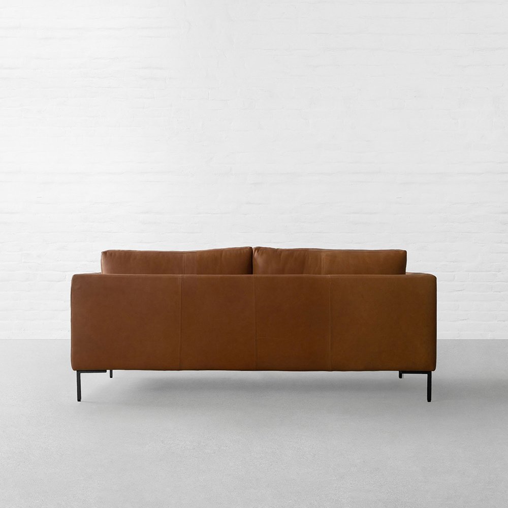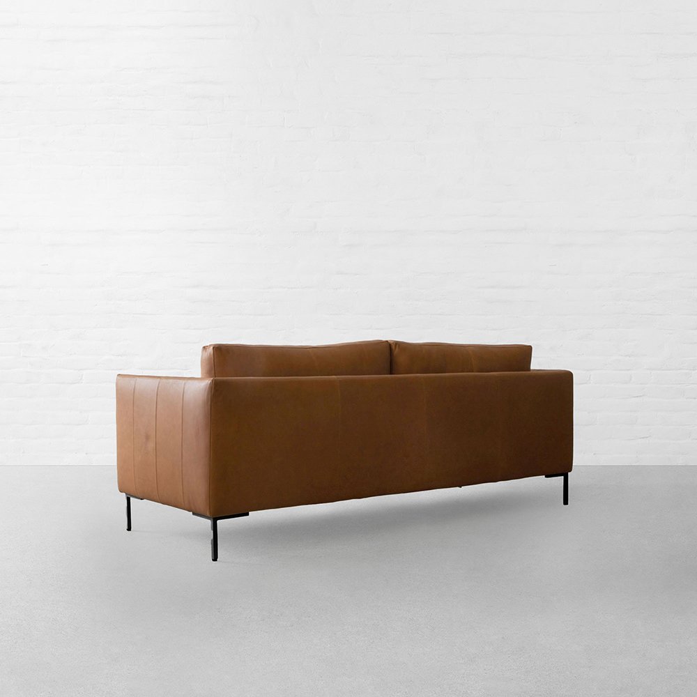 Elevate your space with the Langford Leather Sofa by Art of Rajasthan, featuring luxurious Italian leather in a rich warm brown hue. Designed with clean lines and accented by elegant antique brass legs, it delivers both modern refinement and timeless comfort. A perfect centerpiece for sophisticated interiors.