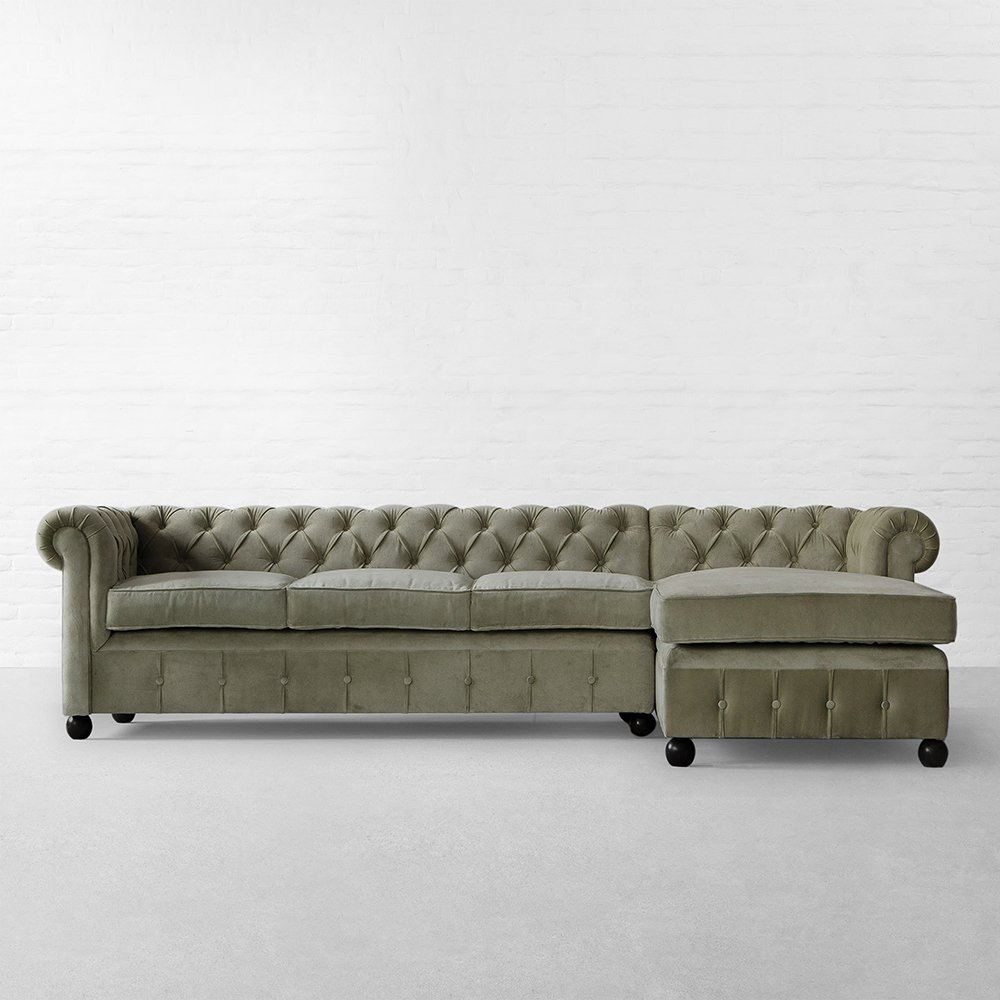 Luxury Chesterfield Tufted Sectional Large Sofa with Chaise – Handcrafted Velvet Sofa