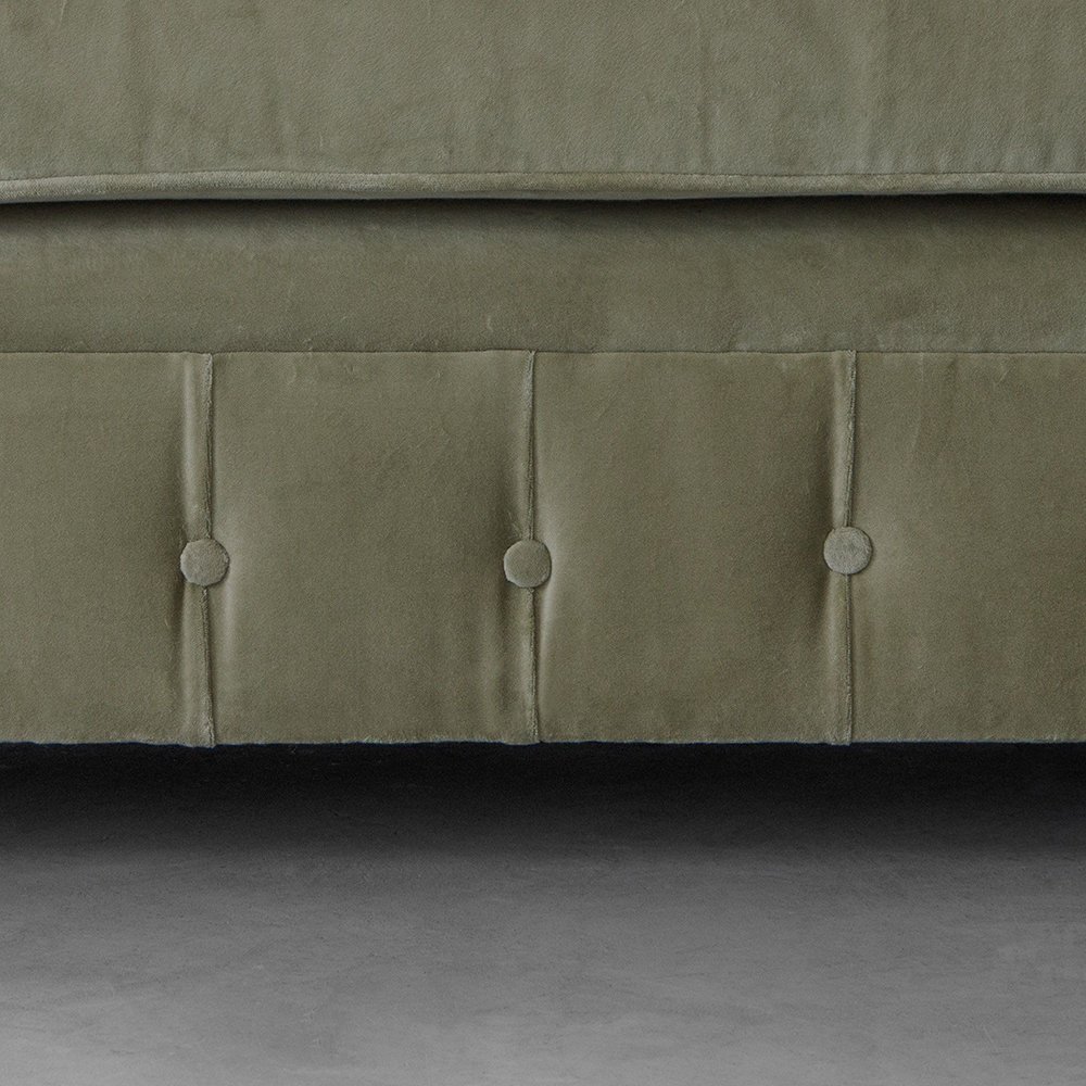 Material: Upholstery of Premium Cotton Velvet Sage Fabric | Black Stained Wooden legs.