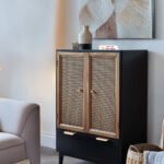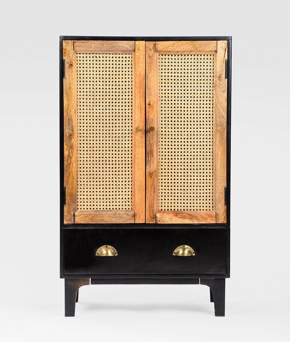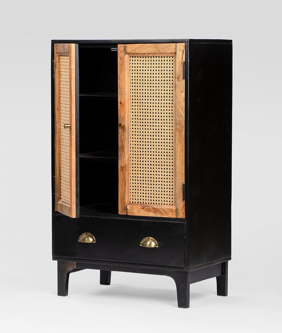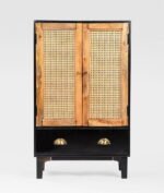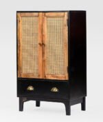 Mango Wood 2 Door Rattan Cabinet Black| Modern Storage Cupboard