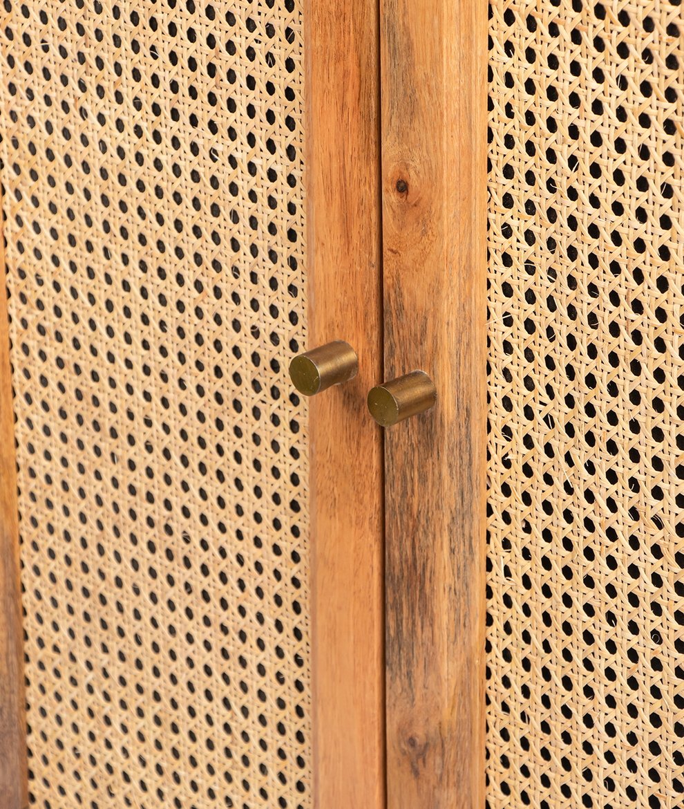- Material: Rattan Web, Metal Knobs, Mango Wood