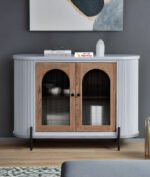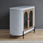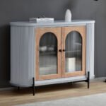 The soft grey finish paired with warm wood tones creates a refined contrast, making it a perfect fit for living rooms, dining spaces, or home offices. Ribbed side detailing and sturdy metal legs lend a contemporary edge, while the spacious interior offers organized and practical storage.
