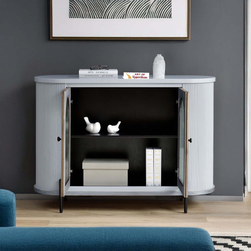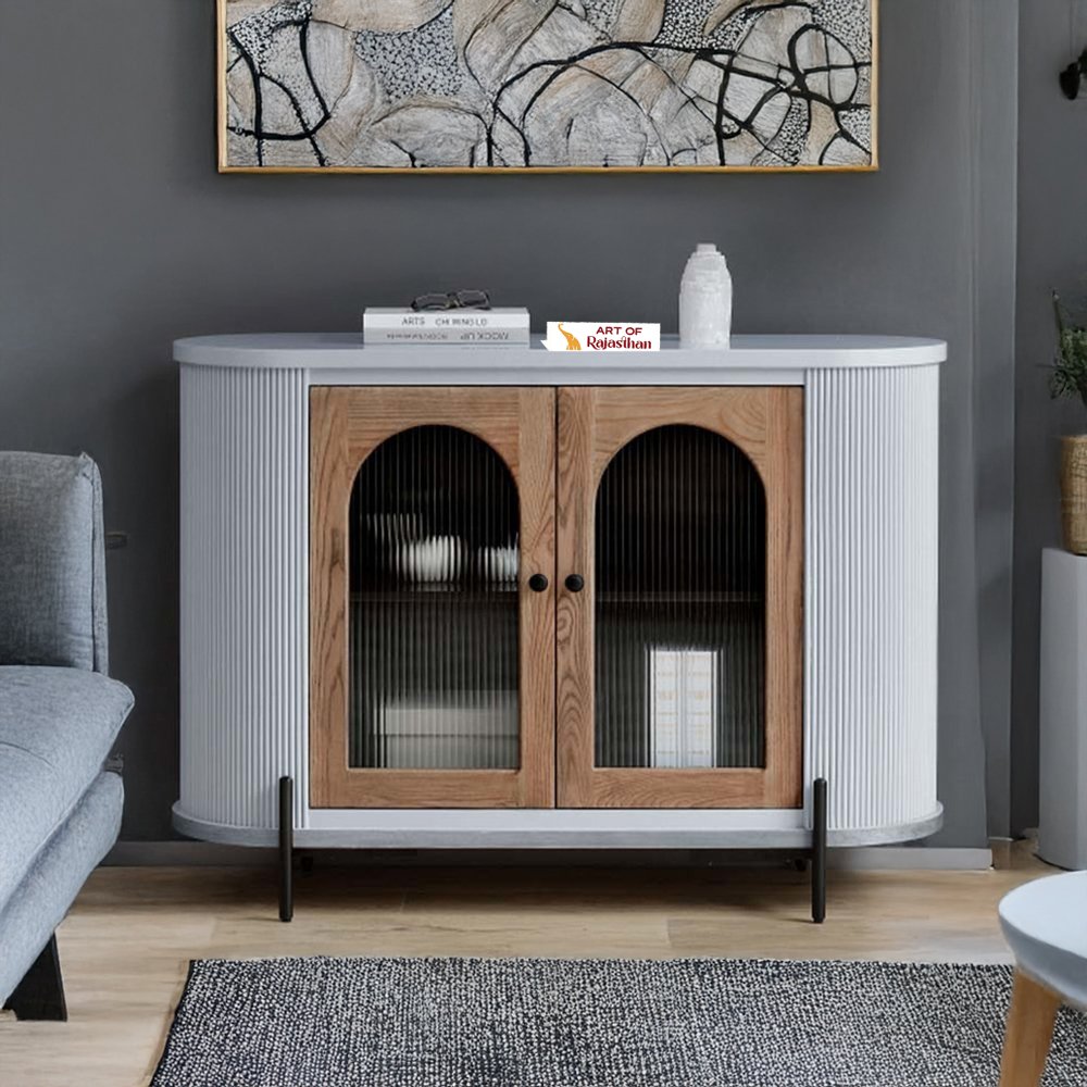 Enhance your interiors with this elegant Mango Wood 2 Glass Door Cabinet in Grey Finish, designed to combine modern sophistication with natural craftsmanship. Made from solid mango wood, this cabinet features beautifully framed arched glass doors that add visual lightness while allowing you to showcase décor, crockery, or collectibles.