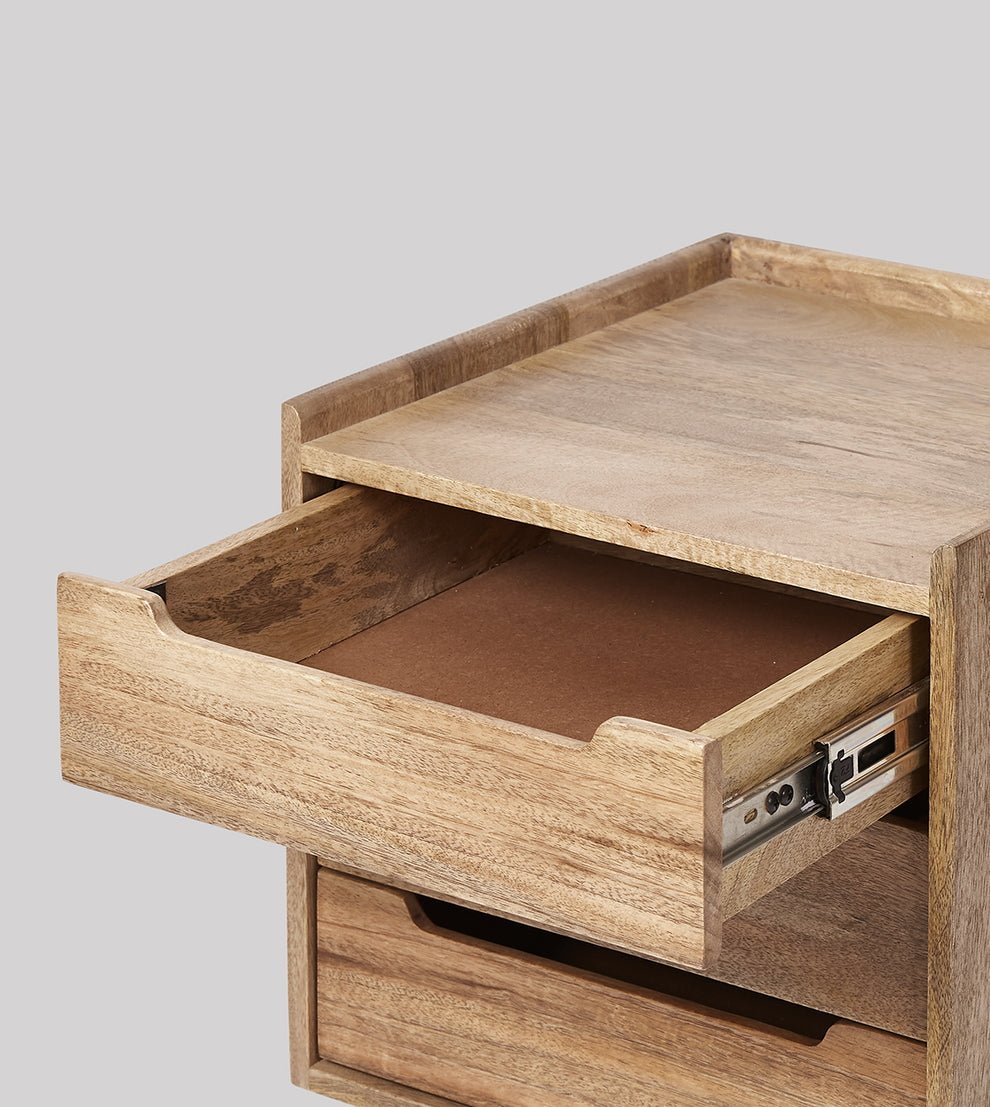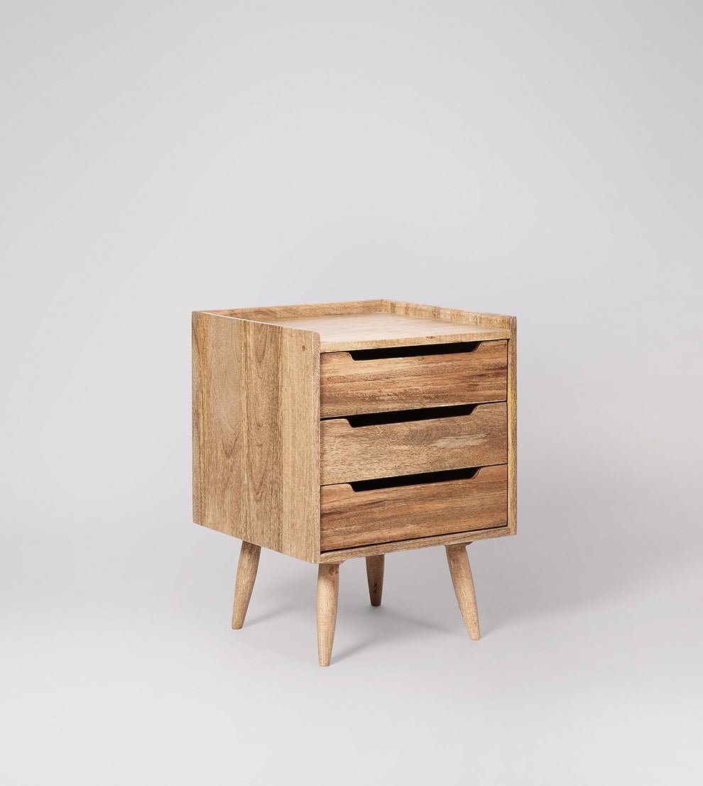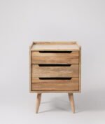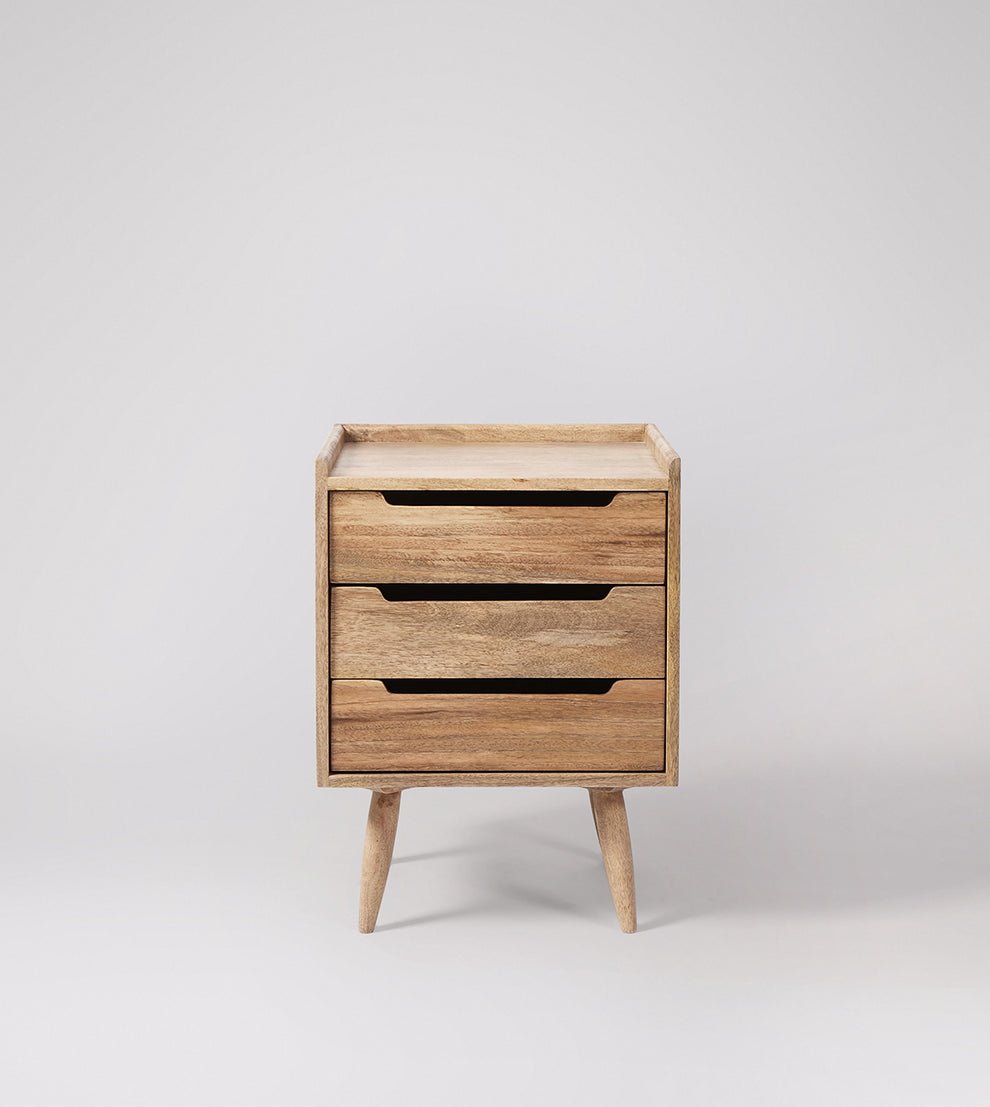 Mango Wood Bedside Table with 3 Drawers | Modern Nightstand