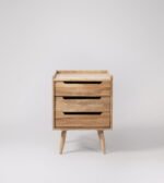 Bring warmth, functionality, and timeless style to your bedroom with this Solid Wood Bedside Table with 3 Drawers. Crafted from premium-quality wood, this modern nightstand features a clean-lined silhouette, smooth natural finish, and sturdy tapered legs that add a subtle mid-century touch.