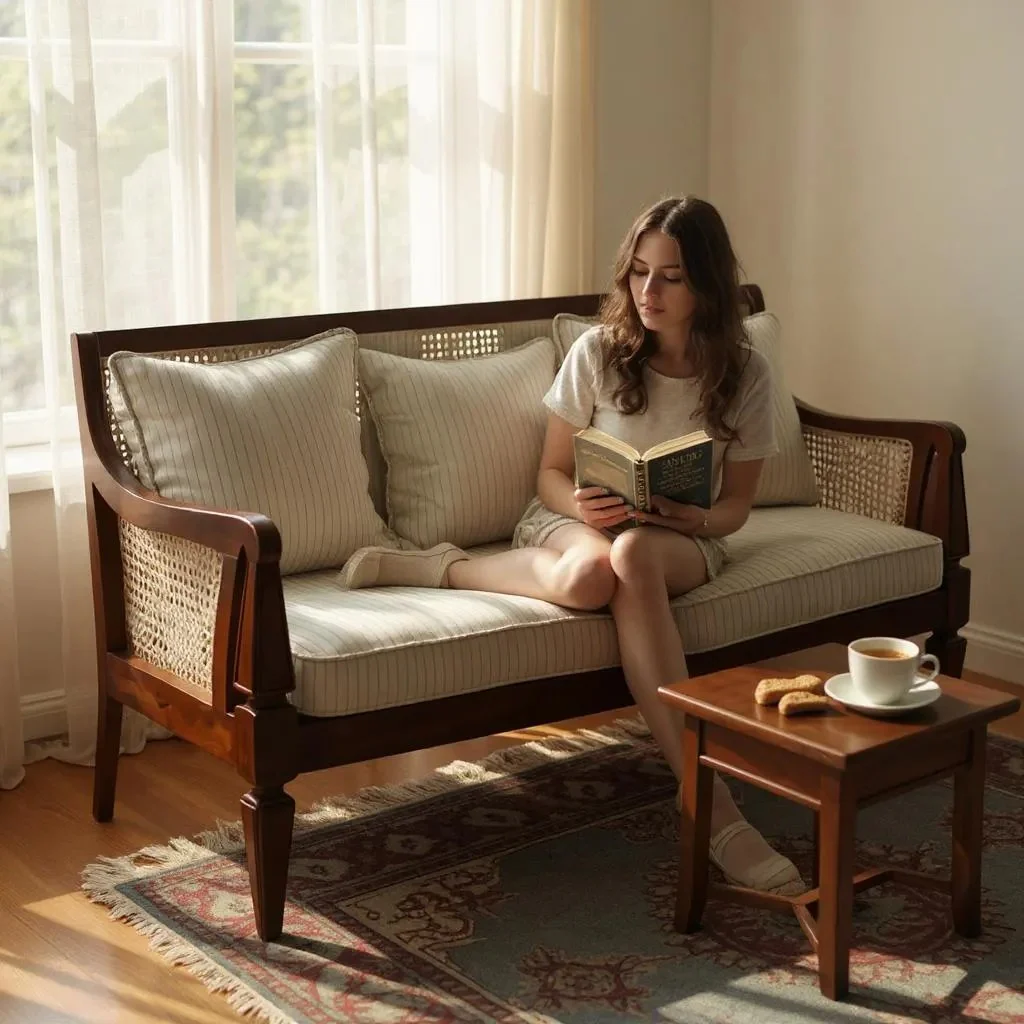Mango Wood Cane Arm Chair – Single Seater & Three Seater Rattan Sofa Set