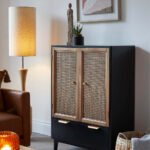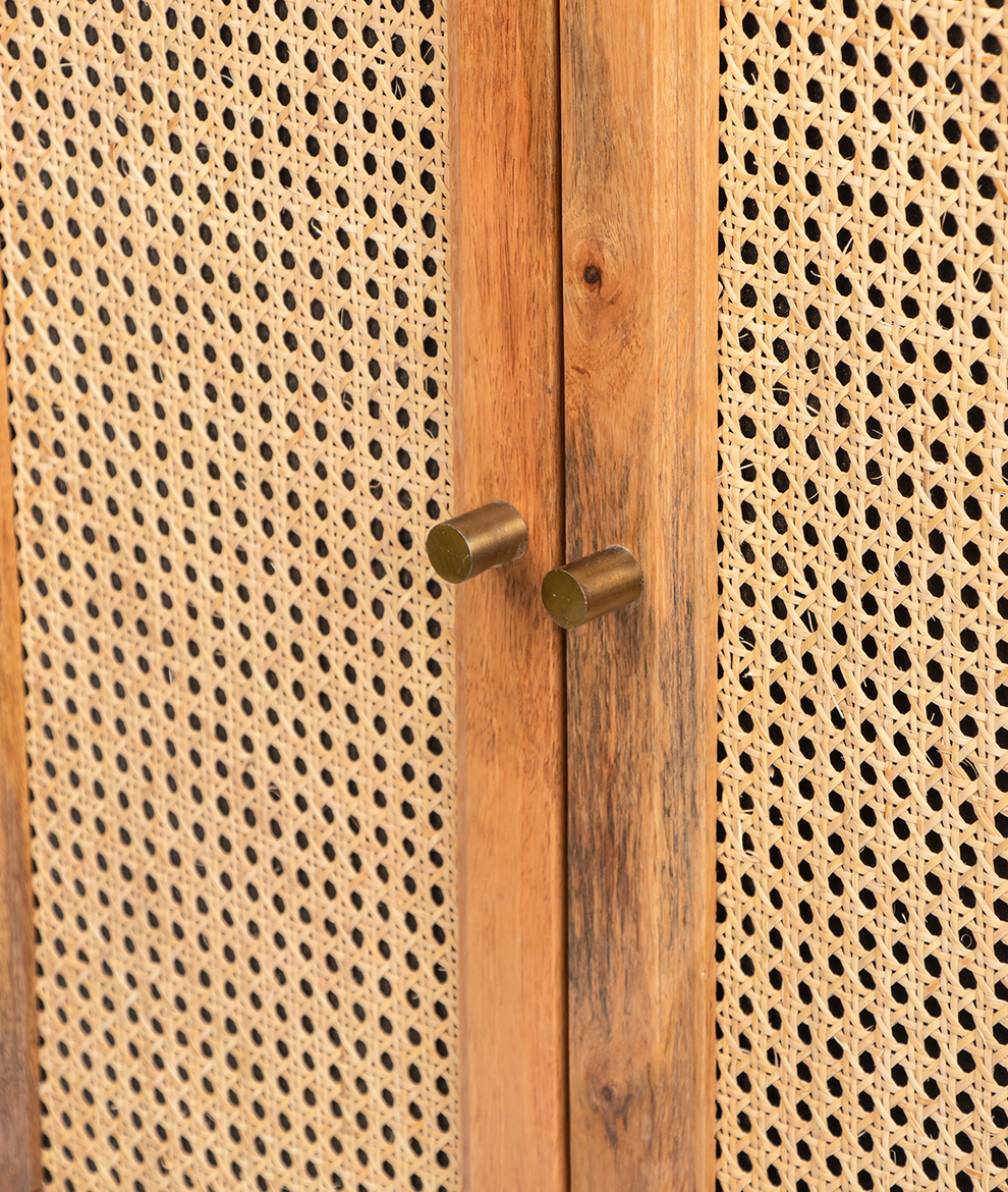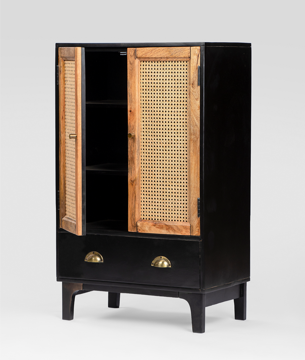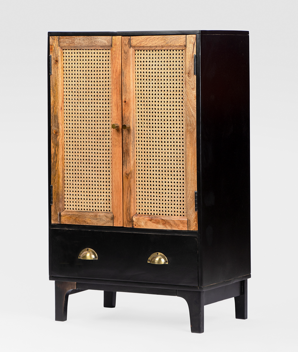 Mango Wood Cane Cabinet 2 Door Black Finish| Storage Cabinet