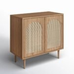 Mango Wood Cane Cabinet with 2 Doors – Natural Finish Storage Unit
