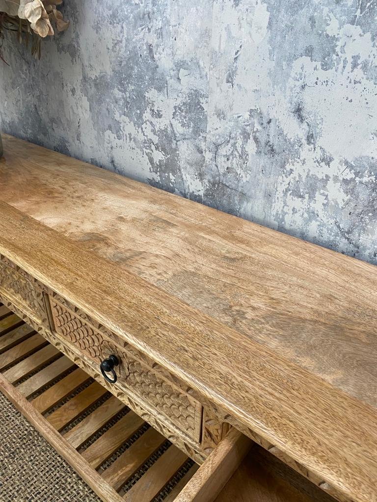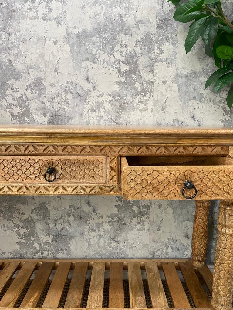 Mango Wood Carved 4 Drawer Console Table – Walnut Finish
