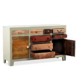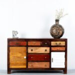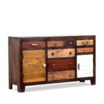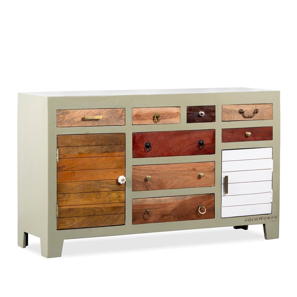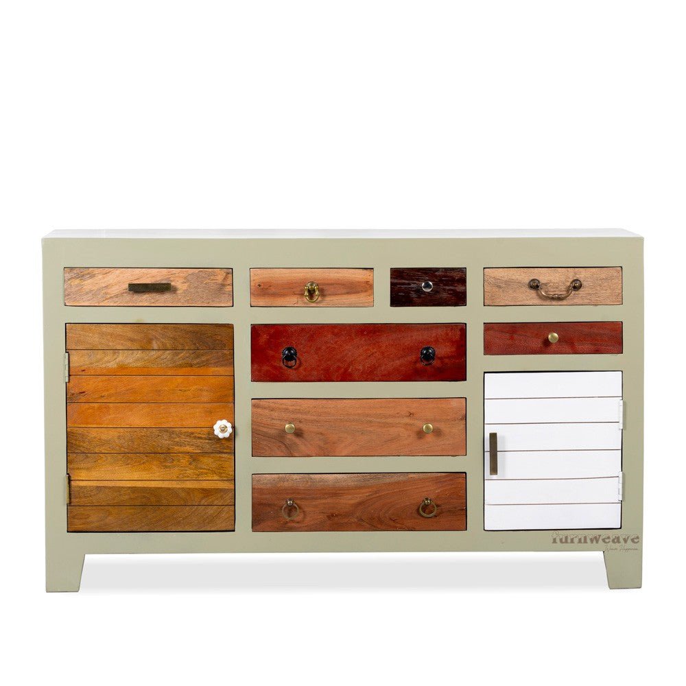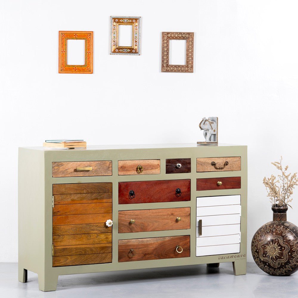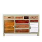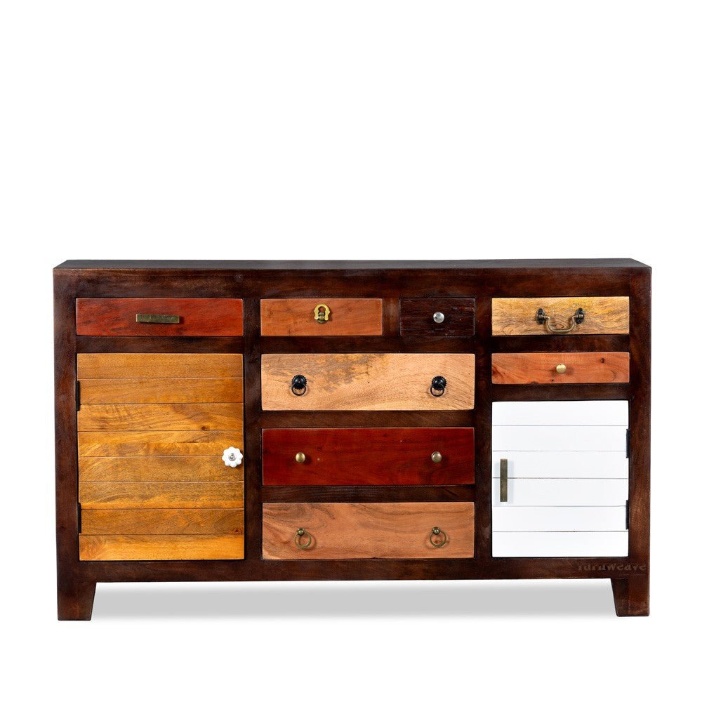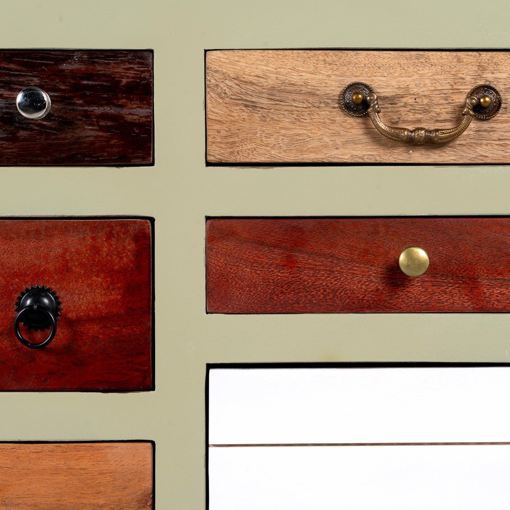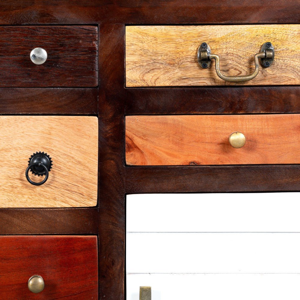 Designed with eight spacious drawers, it offers ample storage for clothing, accessories, documents, or everyday essentials. The smooth drawer fronts and contrasting tones create a warm, eclectic look that works beautifully in bedrooms, living rooms, or hallways.