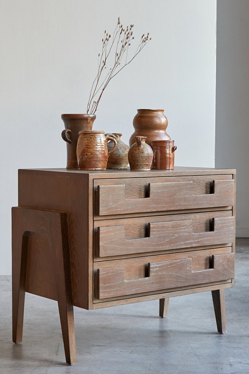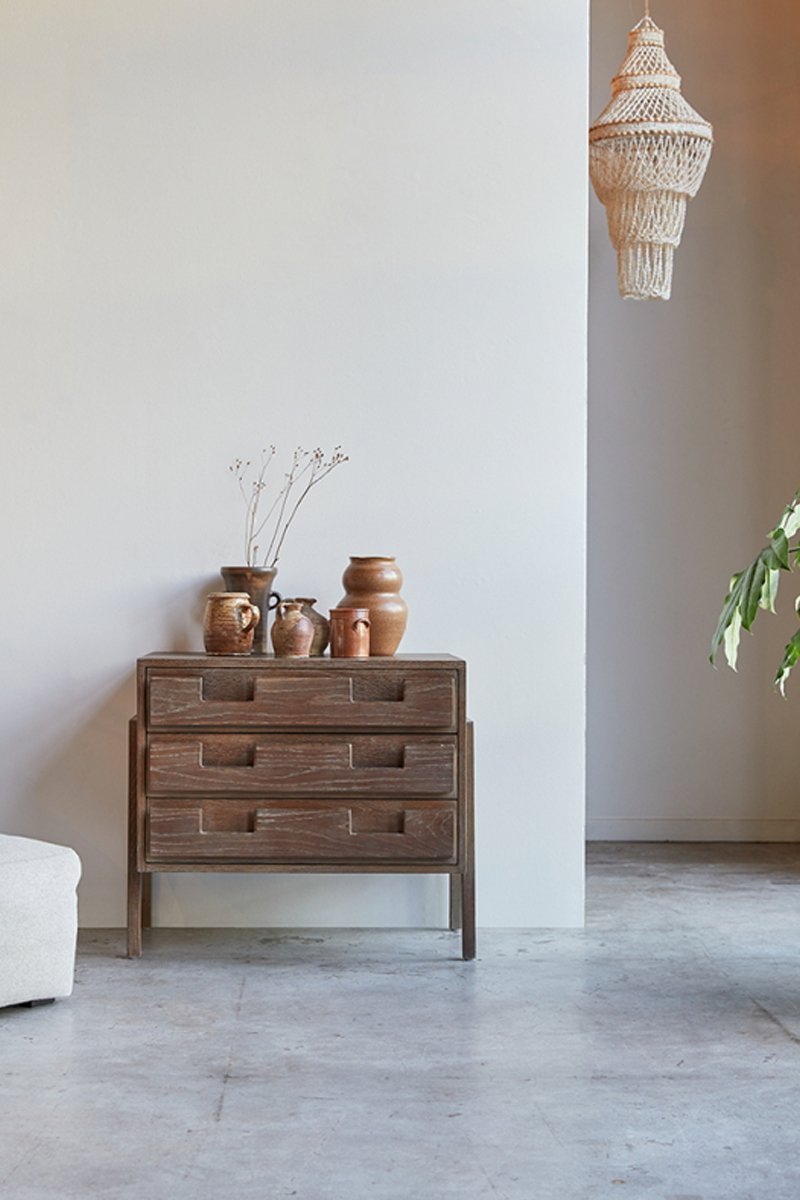 Designed for everyday use, the three deep drawers offer ample space to organize clothes, accessories, documents, or household essentials. The smooth wooden finish enhances durability while maintaining a refined, natural look. Ideal for bedrooms, living rooms, or entryways, this chest of drawers serves both practical storage and elegant display purposes.