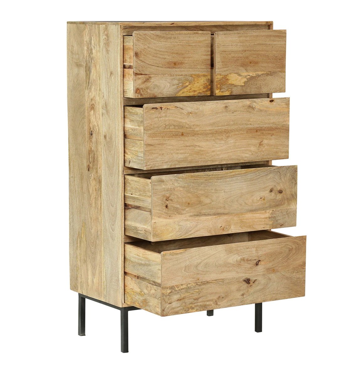 Mango Wood Chest of Drawers – 5 Drawer Natural Finish