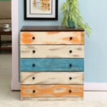 Each drawer offers generous storage space, making it ideal for organizing clothes, accessories, documents, or everyday essentials. The natural wood textures combined with vibrant painted tones create a unique statement piece that works effortlessly in modern, bohemian, or eclectic décor styles.