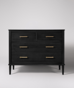 The smooth black finish highlights the natural wood grain while adding a refined, premium look. Multiple drawers provide ample space to organize clothing, linens, accessories, or essentials, making it ideal for bedrooms, living rooms, or hallways.