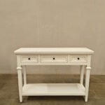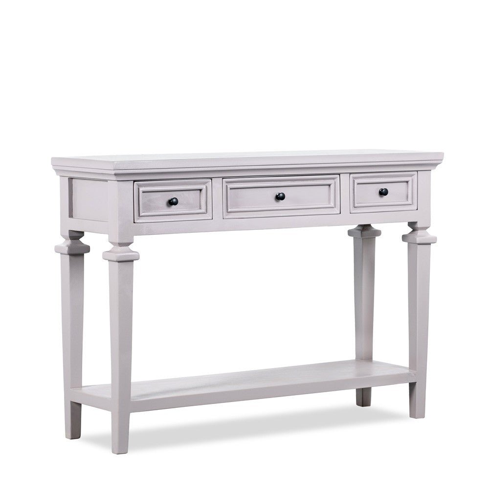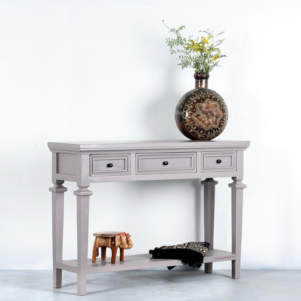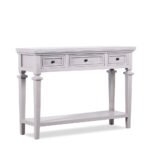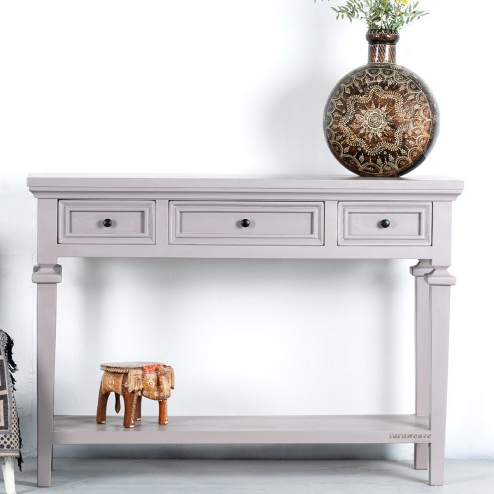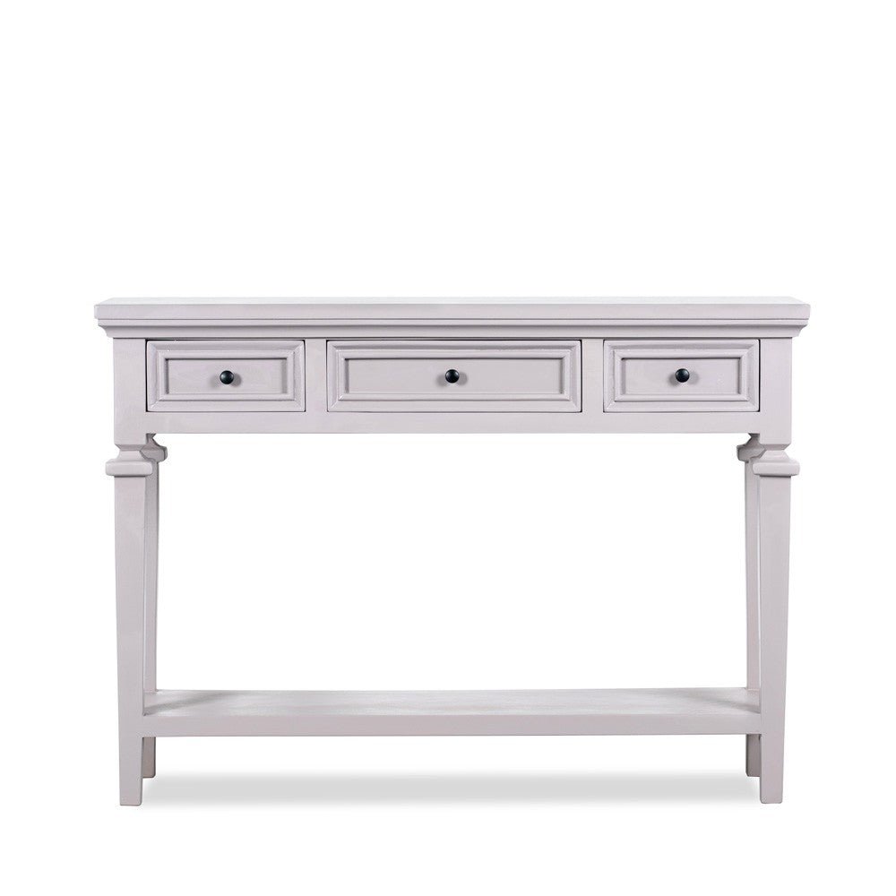 The wide tabletop is perfect for displaying décor, lamps, mirrors, or photo frames, while the three smooth-glide drawers offer concealed storage for everyday essentials, keeping your space neat and organized. A sturdy lower shelf adds additional room for books, baskets, or decorative accents.