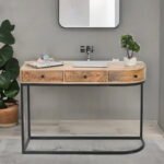 Add modern functionality and industrial charm to your interiors with this stylish Mango Wood Console Table with 3 Drawers and Iron Stand. Crafted from premium solid mango wood, the tabletop and drawers showcase natural wood grain patterns that bring warmth and character to your space.