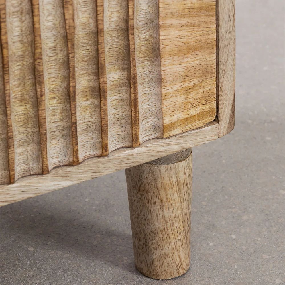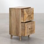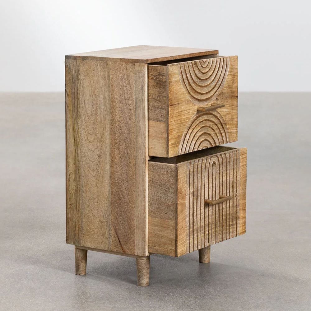 Mango Wood Hand Carved Bedside Table 2 Drawers – Natural Finish Nightstand