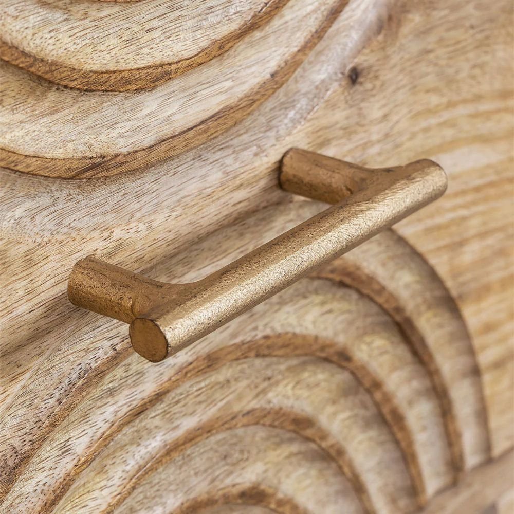 The intricate hand carved detailing enhances its handcrafted appeal, making it a perfect statement piece for modern, bohemian, rustic, and traditional interiors. The smooth natural finish beautifully highlights the rich wood grain, bringing an organic and timeless charm to your space.