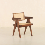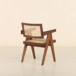 Add a perfect blend of style and comfort to your space with this mango wood rattan arm chair, crafted in a rich walnut finish. Designed with a sturdy solid wood frame and handwoven cane backrest, this chair reflects timeless craftsmanship with a modern mid-century appeal.