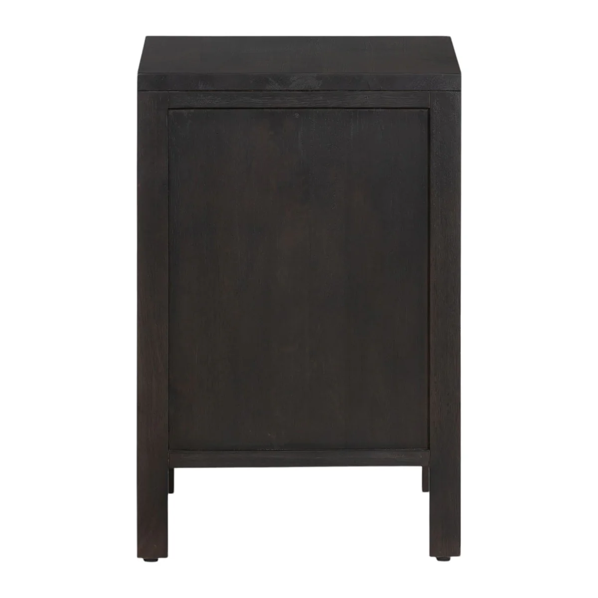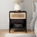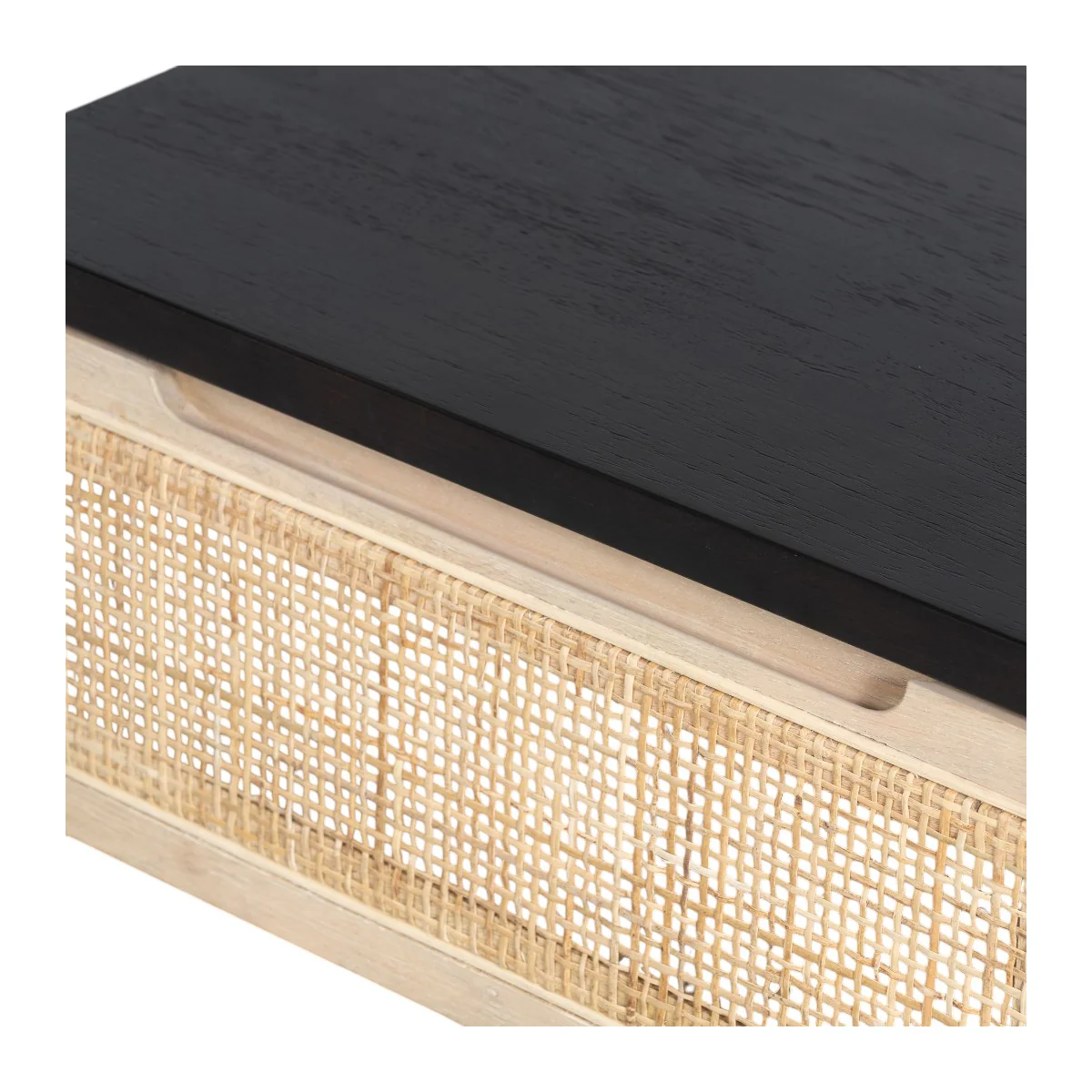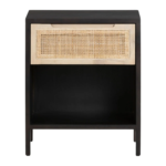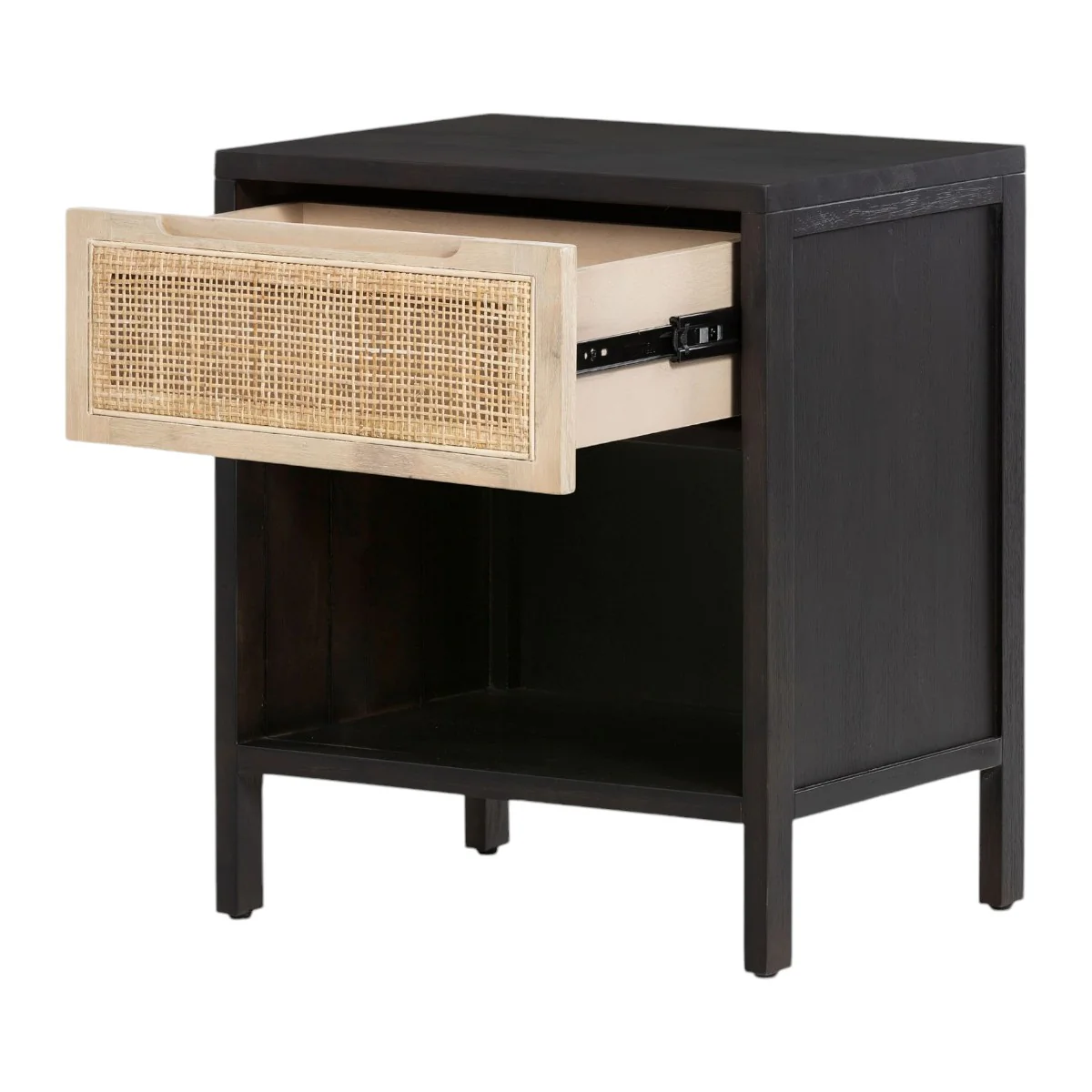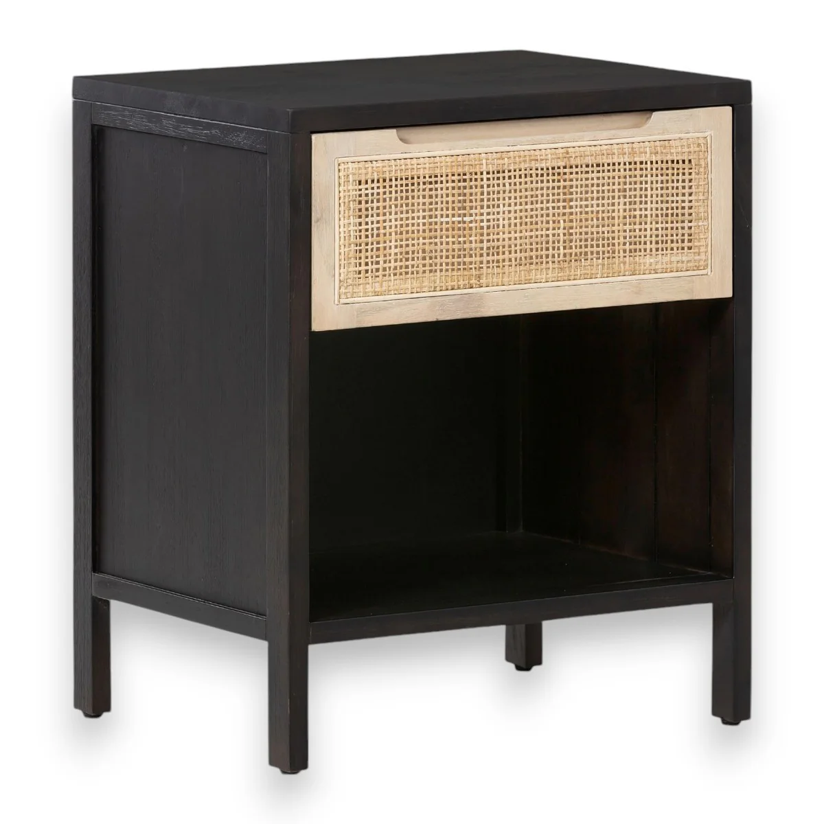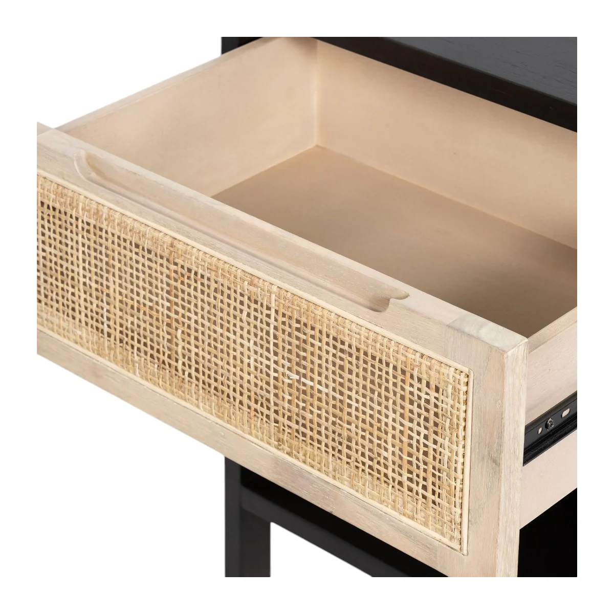 Mango Wood Rattan Bedside Table with Drawer – Black Finish