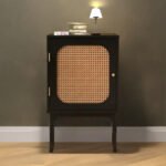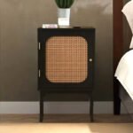 Mango Wood Rattan Bedside Table with Drawer – Black Finish