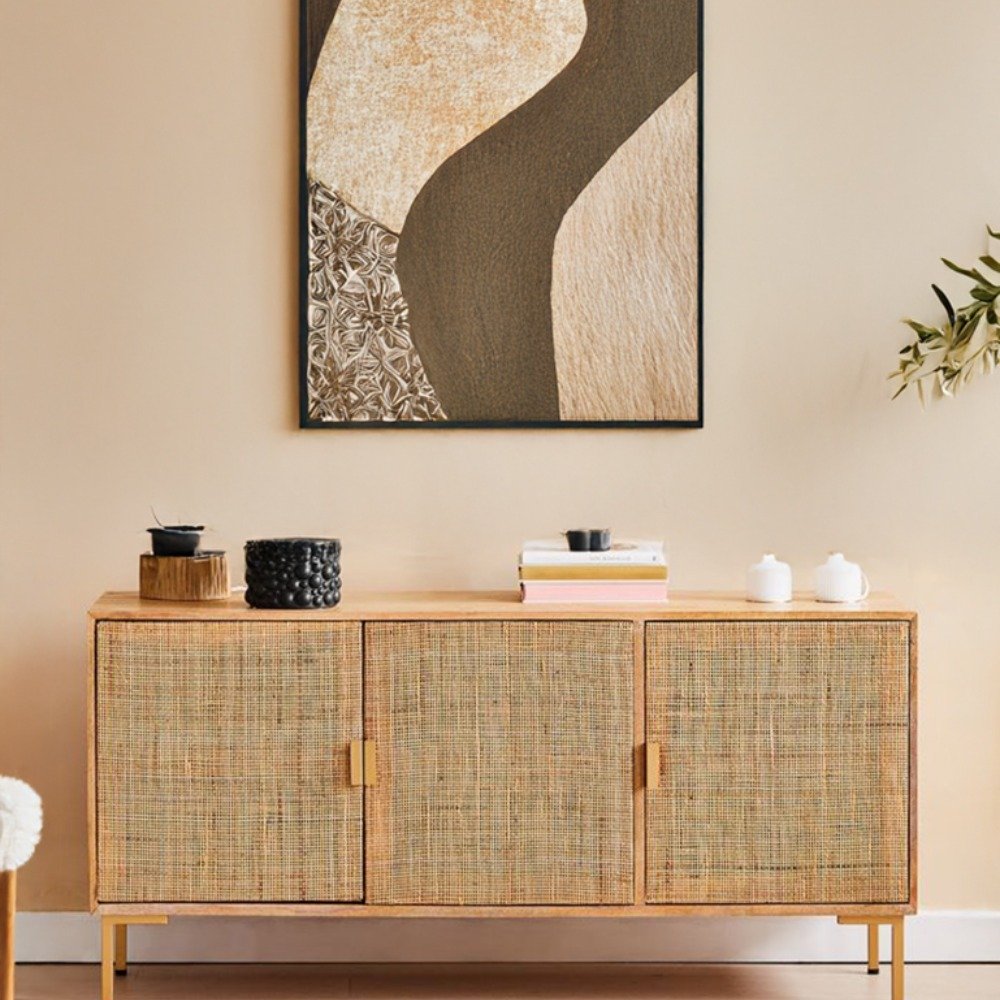 Mango Wood Rattan Sideboard – Natural Finish, Stylish Storage