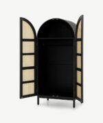 Mango Wood Rattan Wardrobe Curved Shape – Black Finish Solid Wood Wardrobe