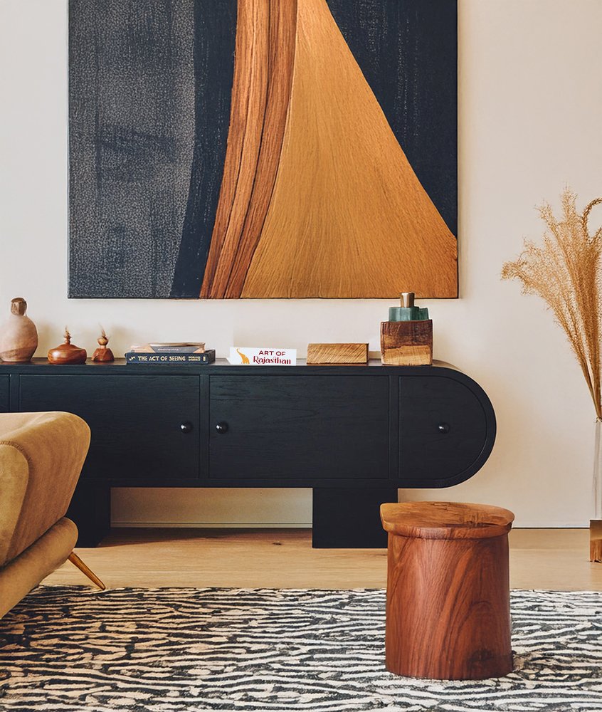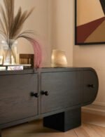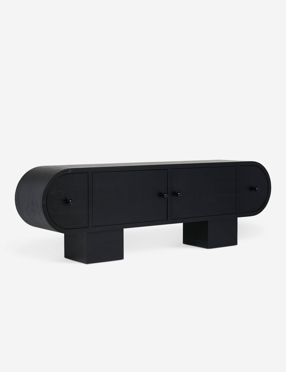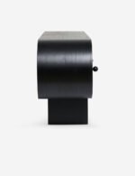 Add bold sophistication to your interiors with this modern black wooden sideboard cabinet, designed for contemporary living spaces. Featuring a sleek oval-inspired silhouette and a smooth matte black finish, this sideboard brings understated luxury to your living room, dining area, or hallway.