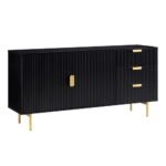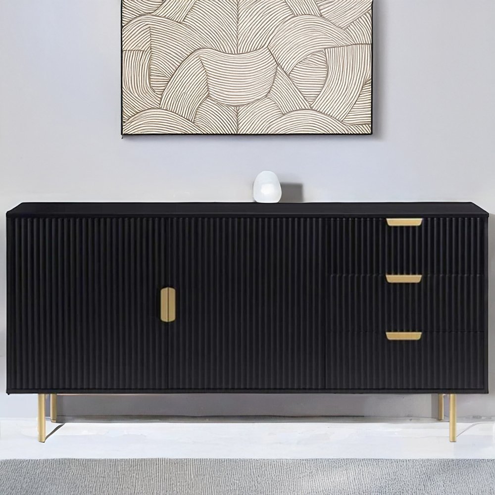 Modern Black Wooden Fluted Sideboard with Gold Handles | Luxury Storage Cabinet