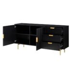 Elevate your home décor with this Modern Black Fluted Sideboard, crafted to add luxury, style, and practical storage to any living or dining space. Designed with elegant vertical fluted detailing, sleek matte-black finish, and premium gold metal handles & legs, this cabinet delivers the perfect blend of contemporary sophistication and functional design.