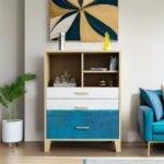 Modern Blue & White Wooden Chest of Drawers with Shelves