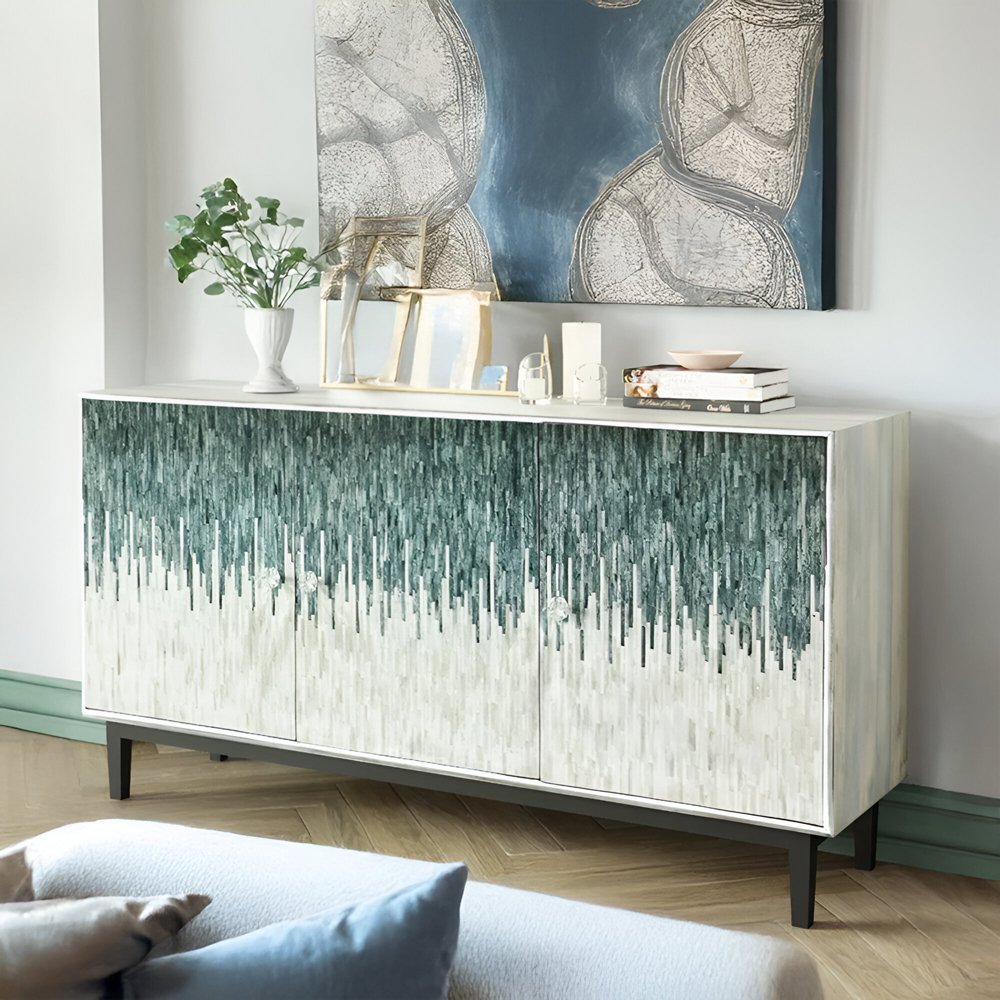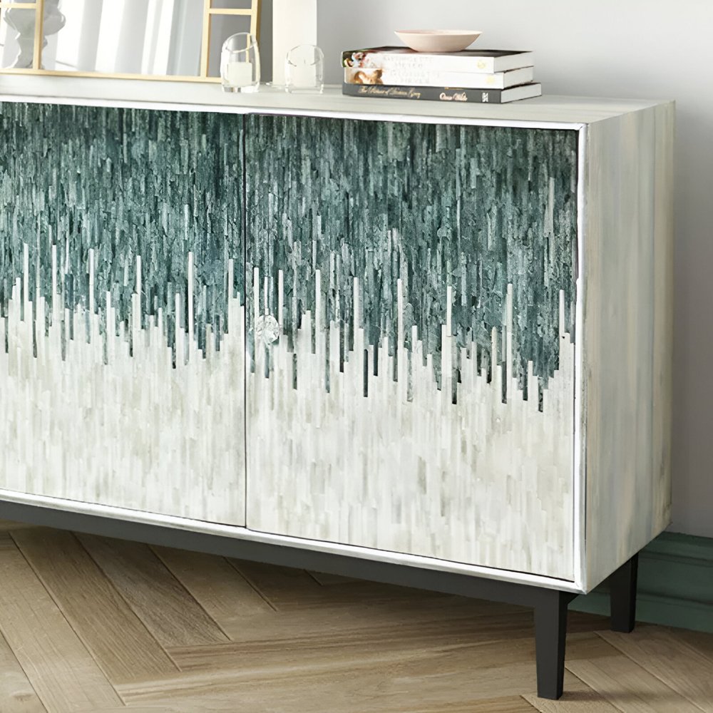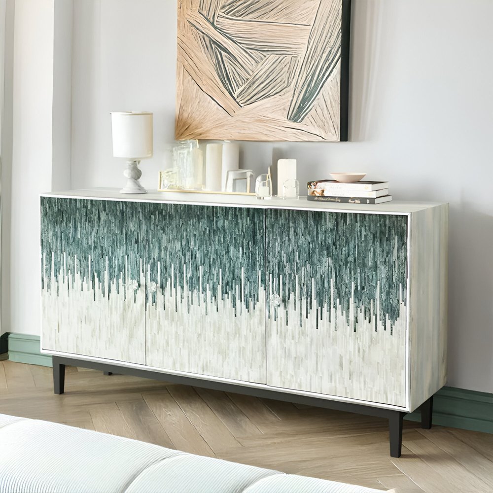 Modern Bone Inlay Sideboard – Green Abstract | Art of Rajasthan