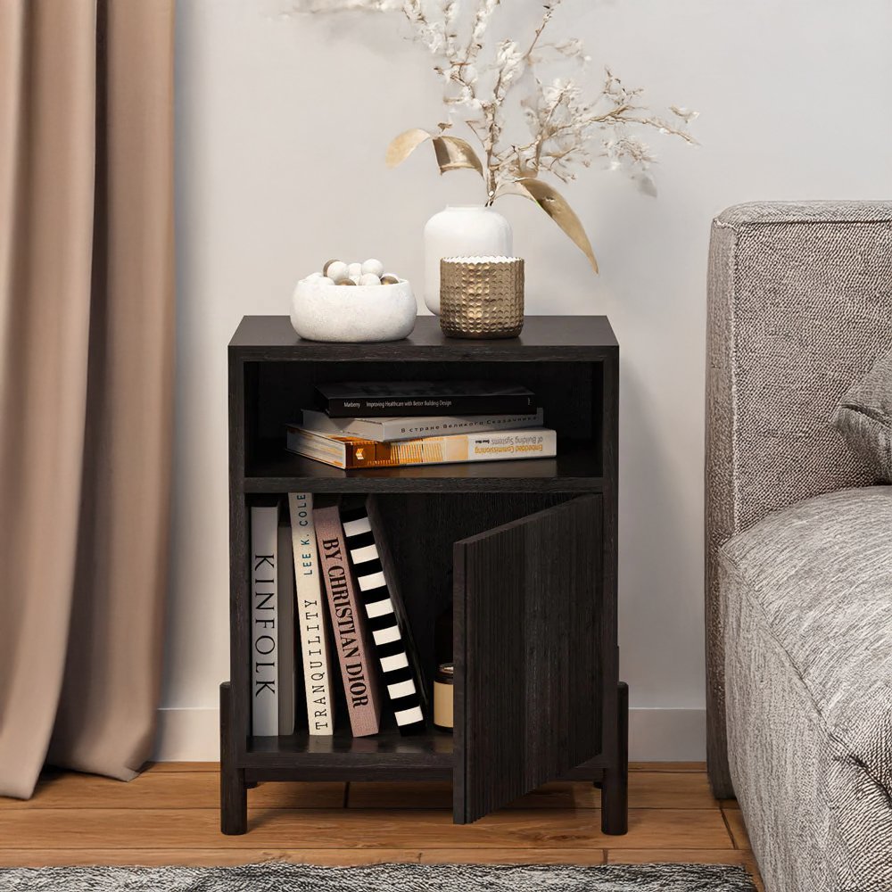 Modern Solid Wood Bedside Table – Black Fluted with Storage Cabinet
