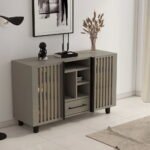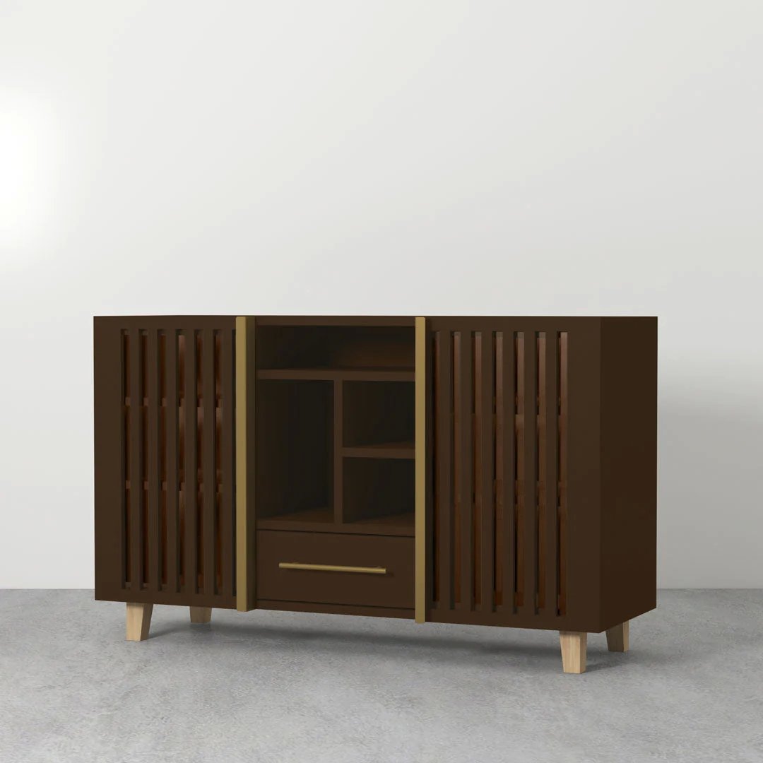 Upgrade your living space with this modern wooden sideboard cabinet, designed to blend contemporary style with everyday functionality. Featuring elegant slatted doors, a central open shelf, and spacious closed storage, this cabinet offers a perfect solution for organizing books, décor, dinnerware, or daily essentials.