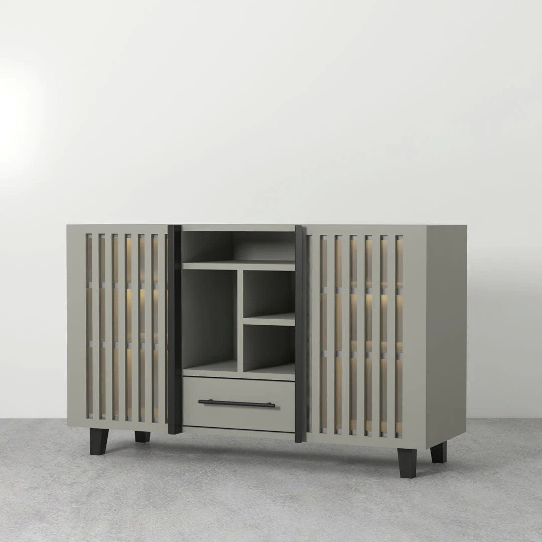 Modern Wooden Sideboard Cabinet with Slatted Doors & Storage