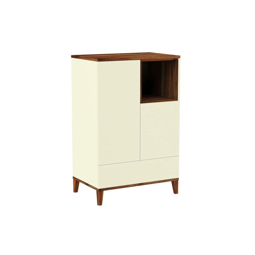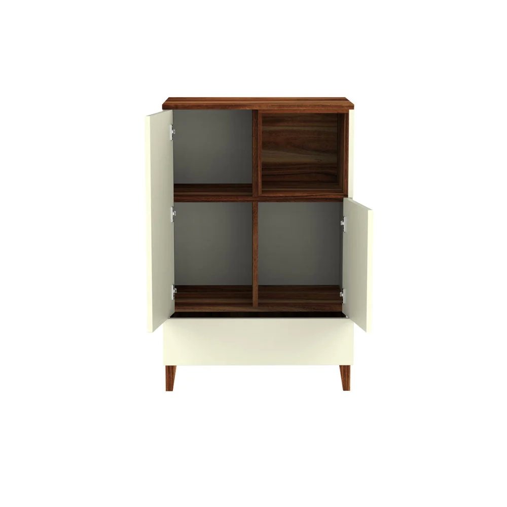 Enhance your home with this modern wooden storage cabinet, designed with a clean minimalist finish and warm natural-wood accents. The cabinet features a stylish combination of matte cream panels and rich wooden textures, giving it a premium Scandinavian-inspired look that fits perfectly in bedrooms, living rooms, or study spaces.