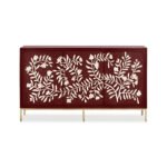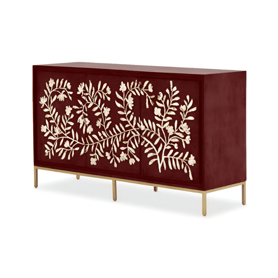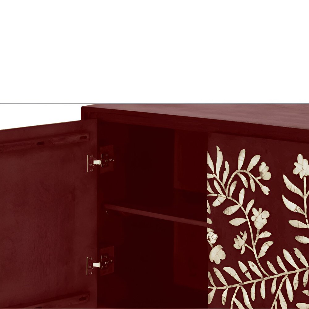 Bold Elegance in Bloom – Floral Burgundy Inlay Cabinet