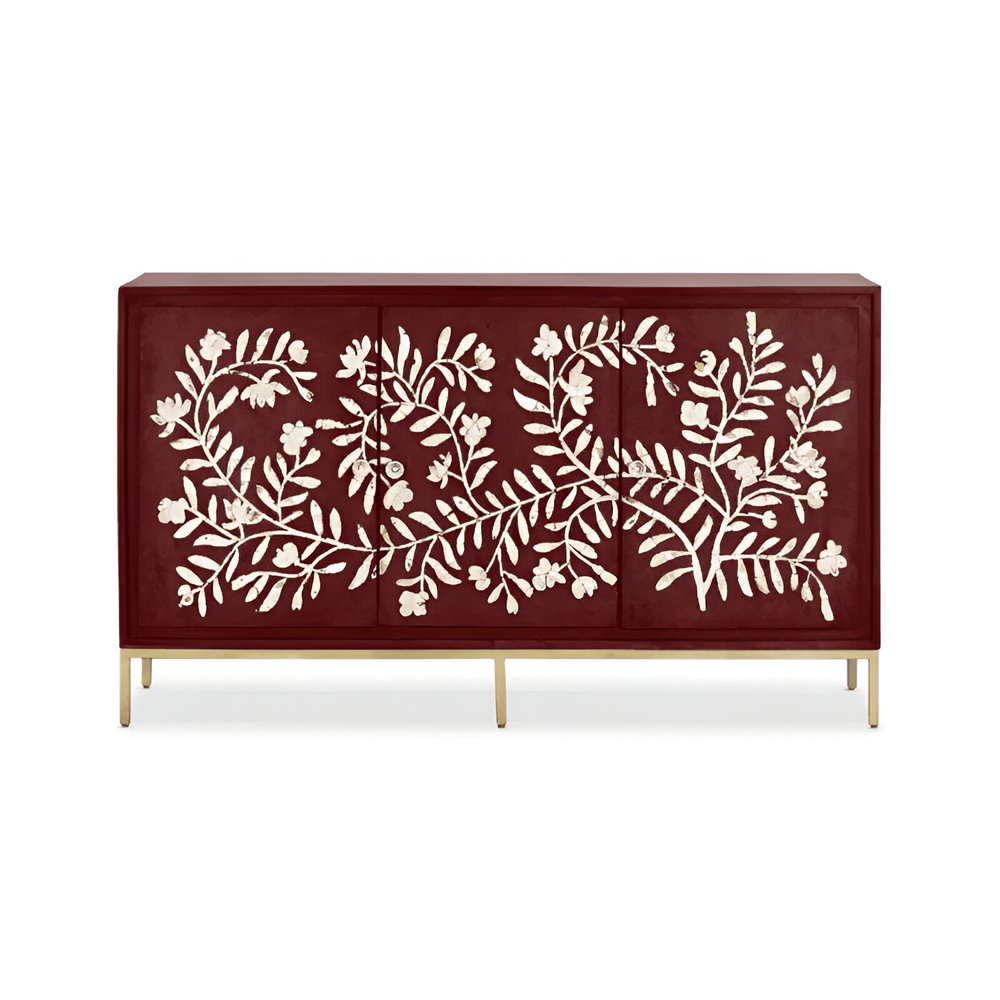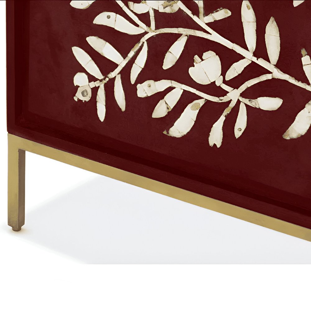 Mother of Pearl Inlay Storage Cabinet – Floral Burgundy