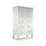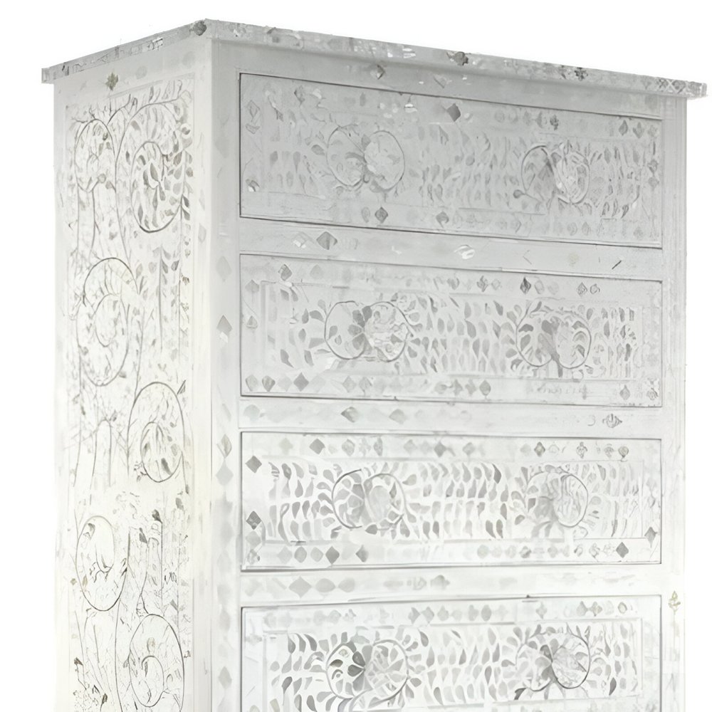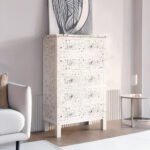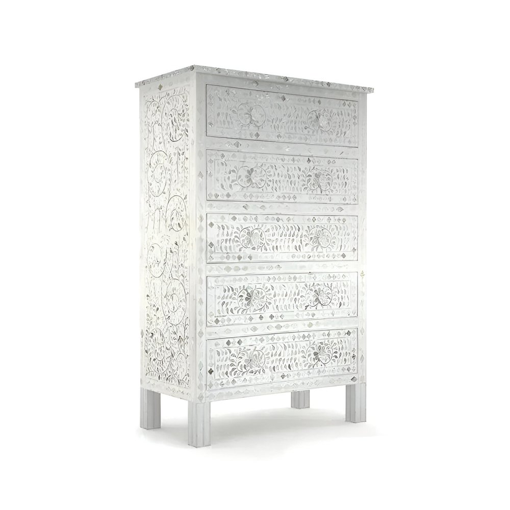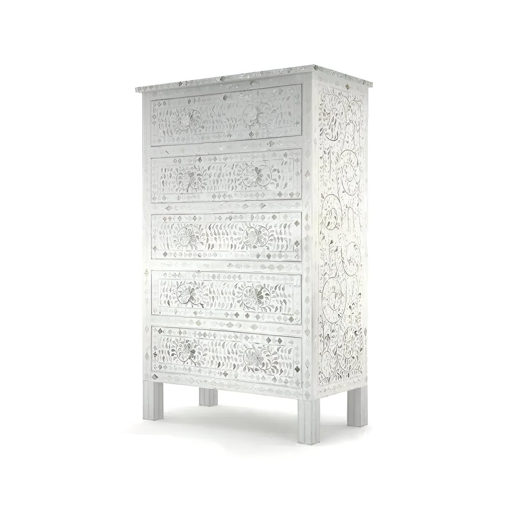 Mother of Pearl Inlay Tallboy – 5 Drawers | Off-White Elegance