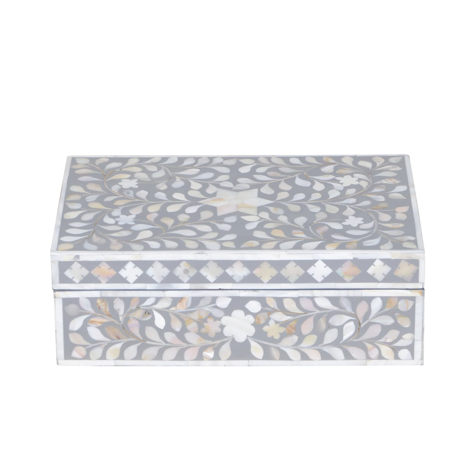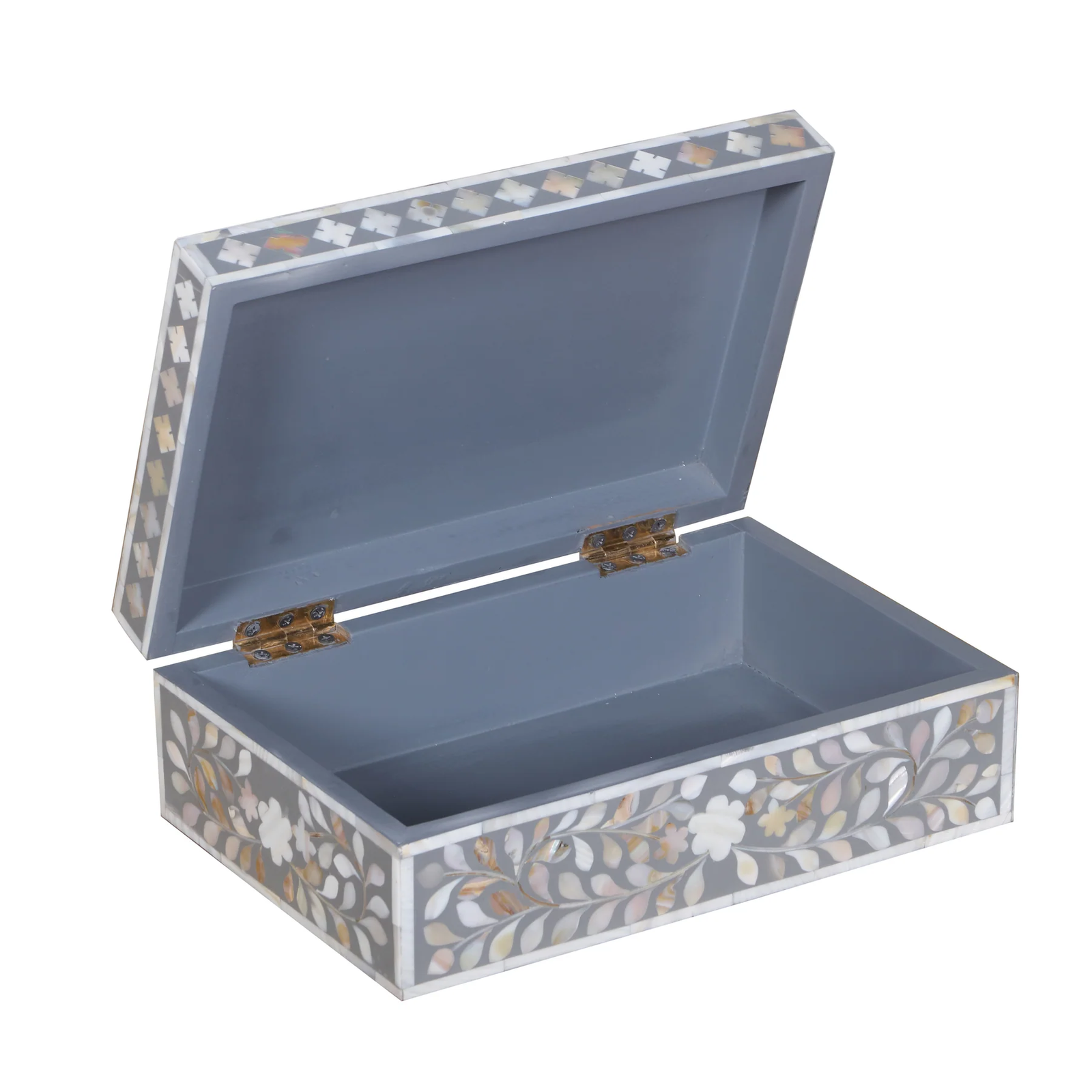 Mother of Pearl Inlay Rectangular Jewellery Box – Grey Floral Decorative Storage Box