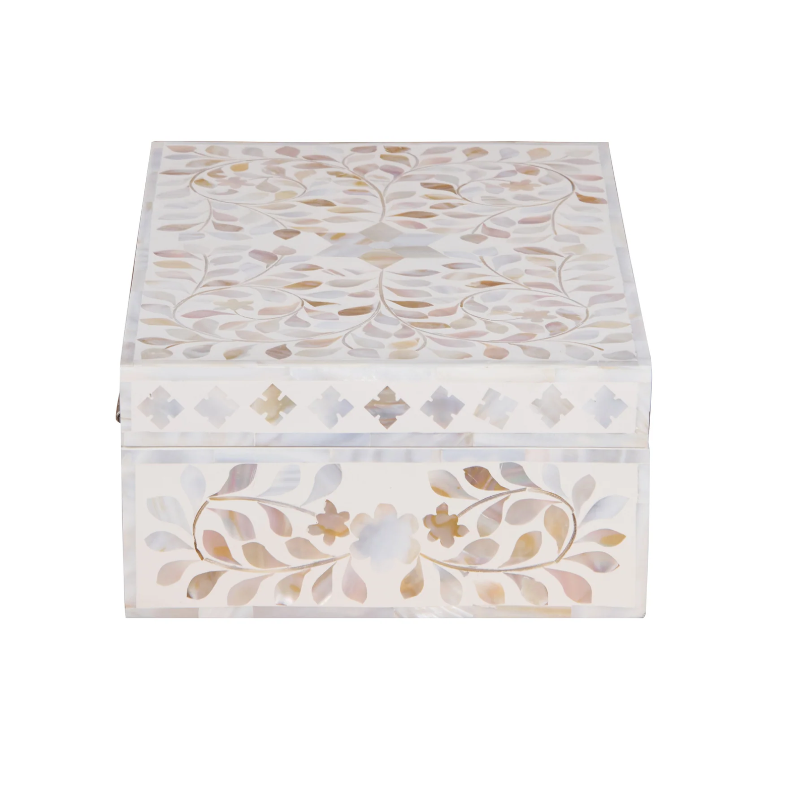 Durable and beautifully crafted, this mother of pearl jewellery box is ideal for keeping your valuables organized while elevating your dressing table or vanity with a timeless, artistic touch.