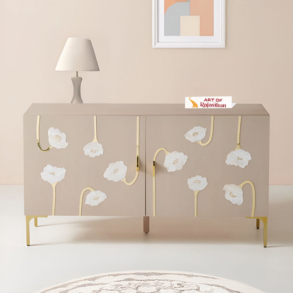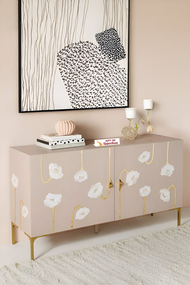 Modern Mother of Pearl Inlay Sideboard – Blush Bloom Floral | Art of Rajasthan