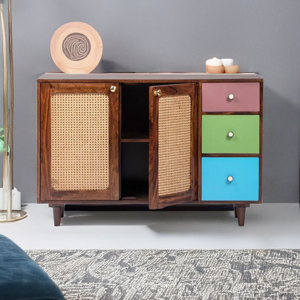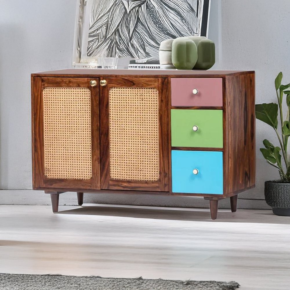 Multicolor Mango Wood Sideboard with Cane 2 Doors – Modern Storage