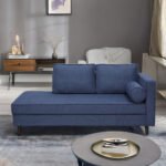 Navy Blue Fabric Upholstered Chaise Lounge – Modern Relaxing Chair with PU & Chopped Foam Seating