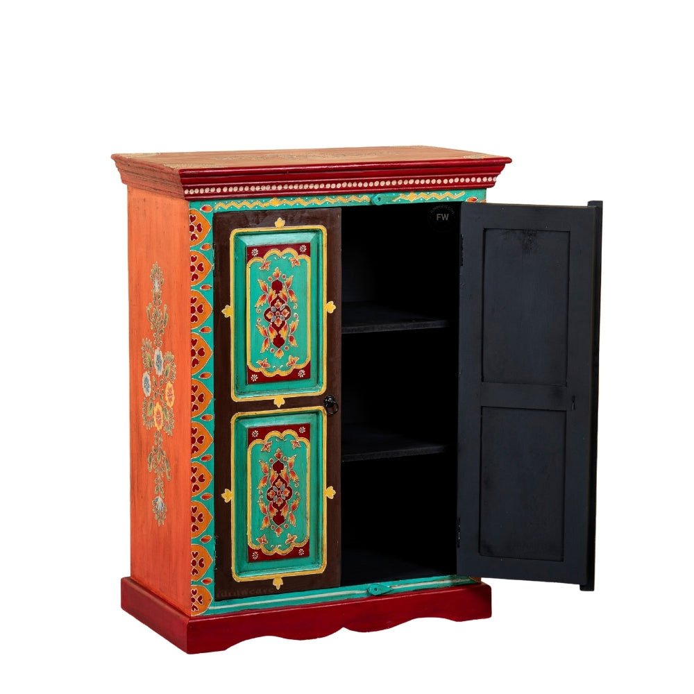 Rajasthani Hand-Painted Acacia Wooden Cabinet – Vibrant Home Décor